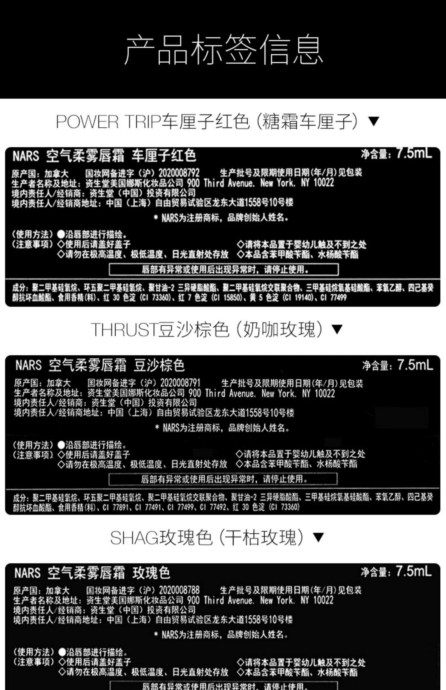 NARS空气柔雾唇霜唇釉 吉普赛Gipsy684 焦糖栗棕686