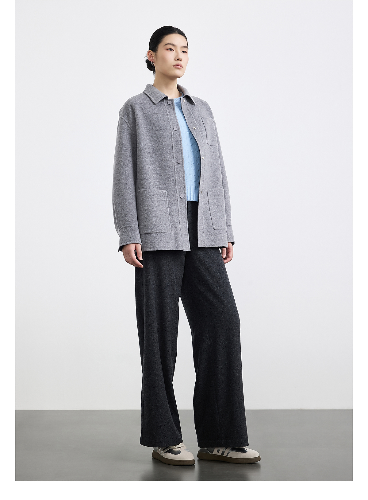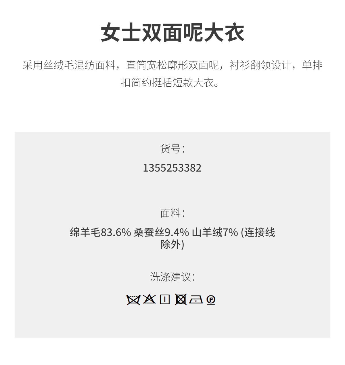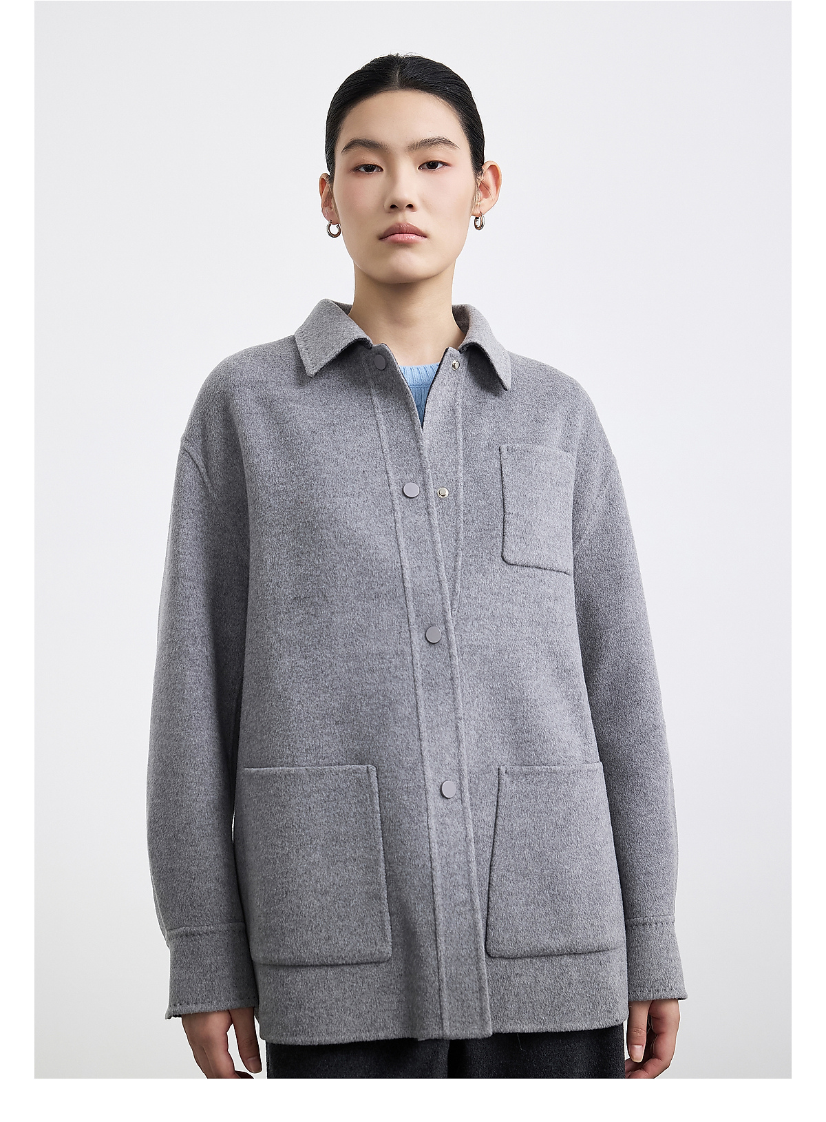 PURE TOUCH女装25秋冬新款双面呢大衣短款外套丝绒毛混纺毛呢上衣