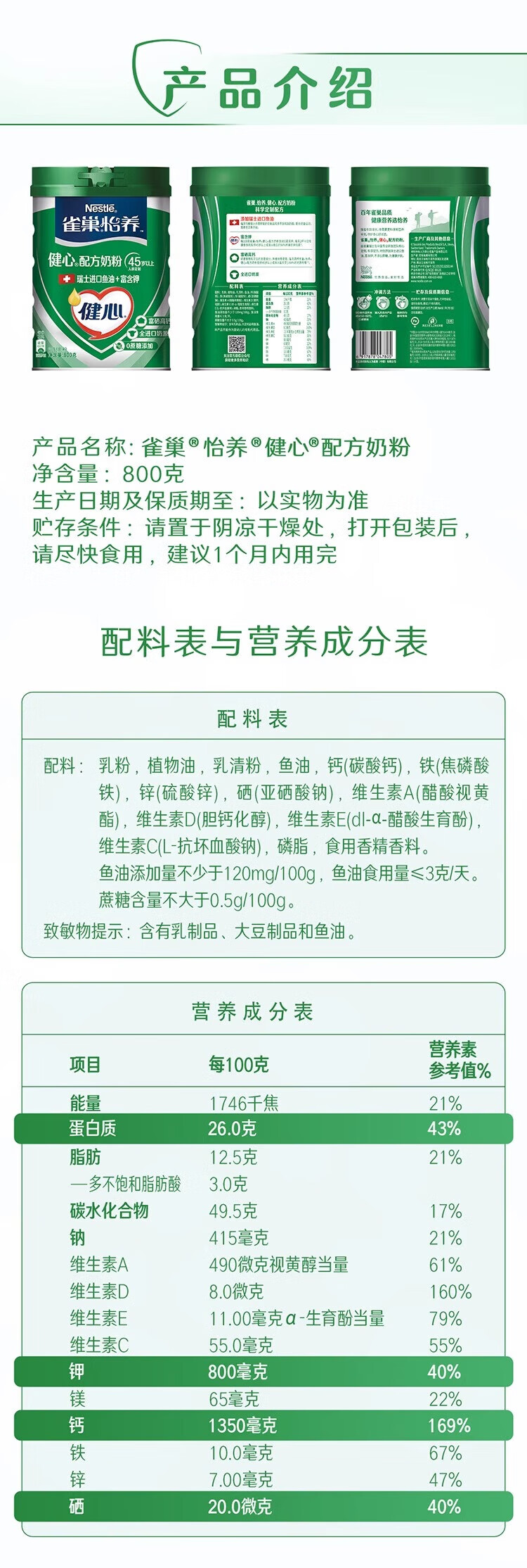雀巢(Nestle) 怡养健心配方奶粉中老年奶粉鱼油 800g