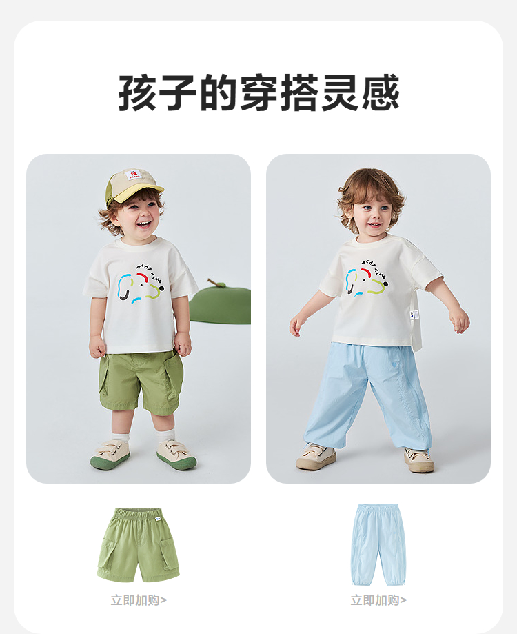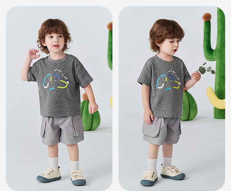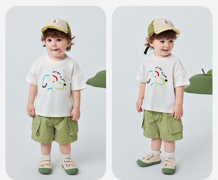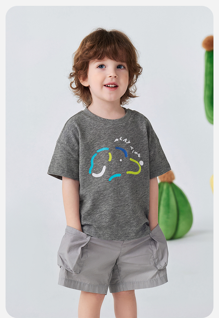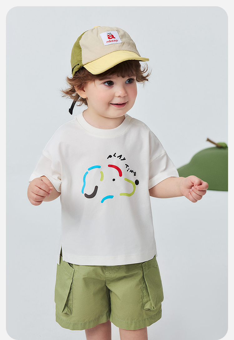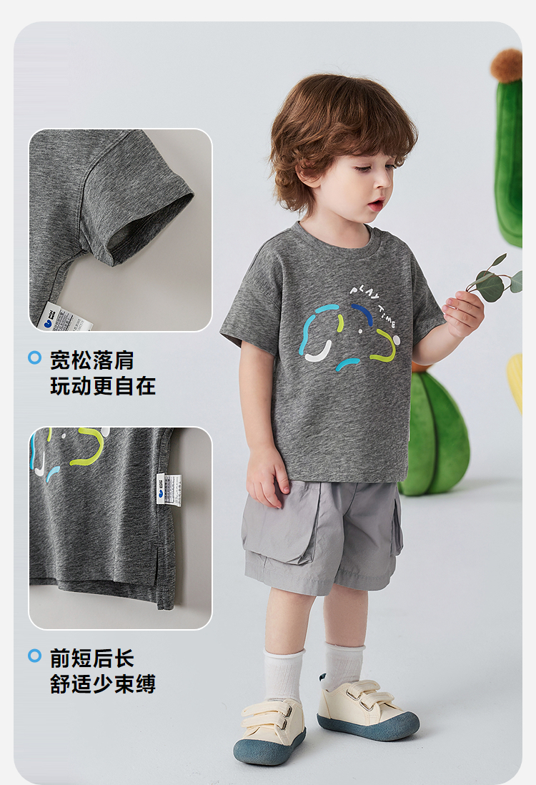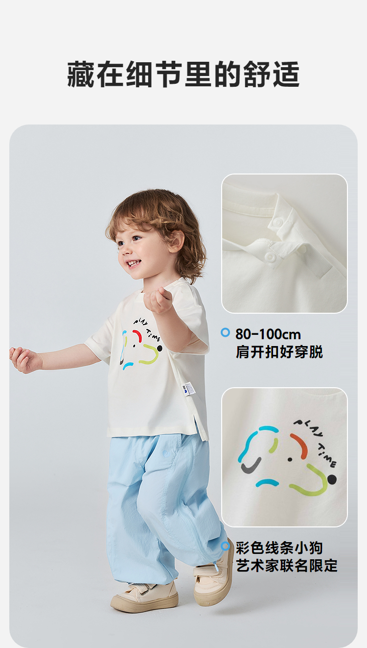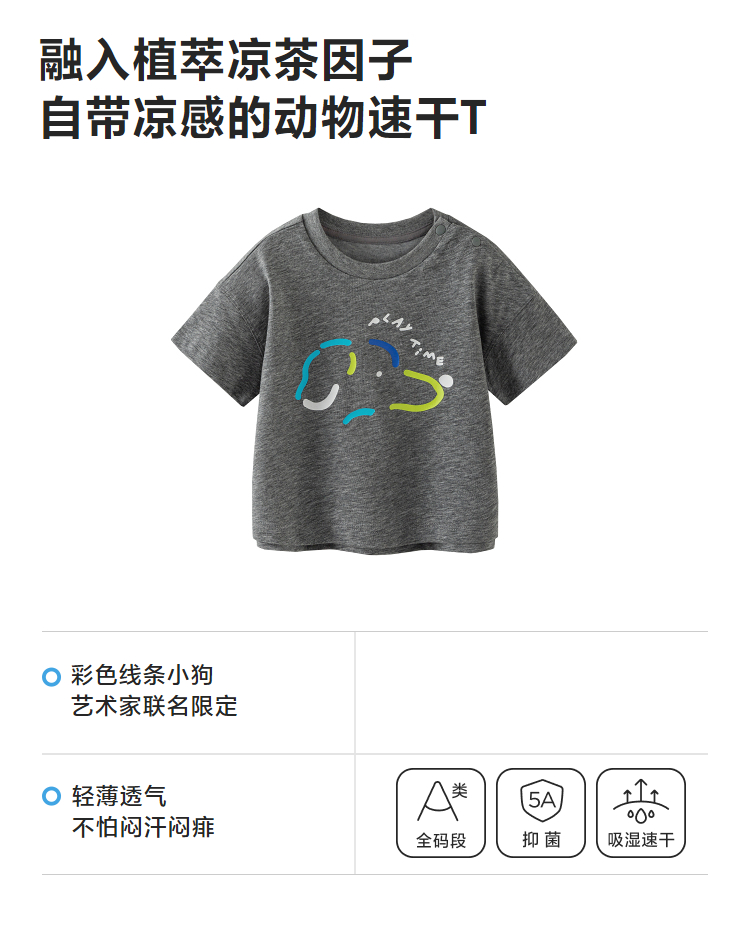 迷你巴拉巴拉宝宝短袖T恤吸湿速干凉感透气儿童上衣可爱彩色小狗