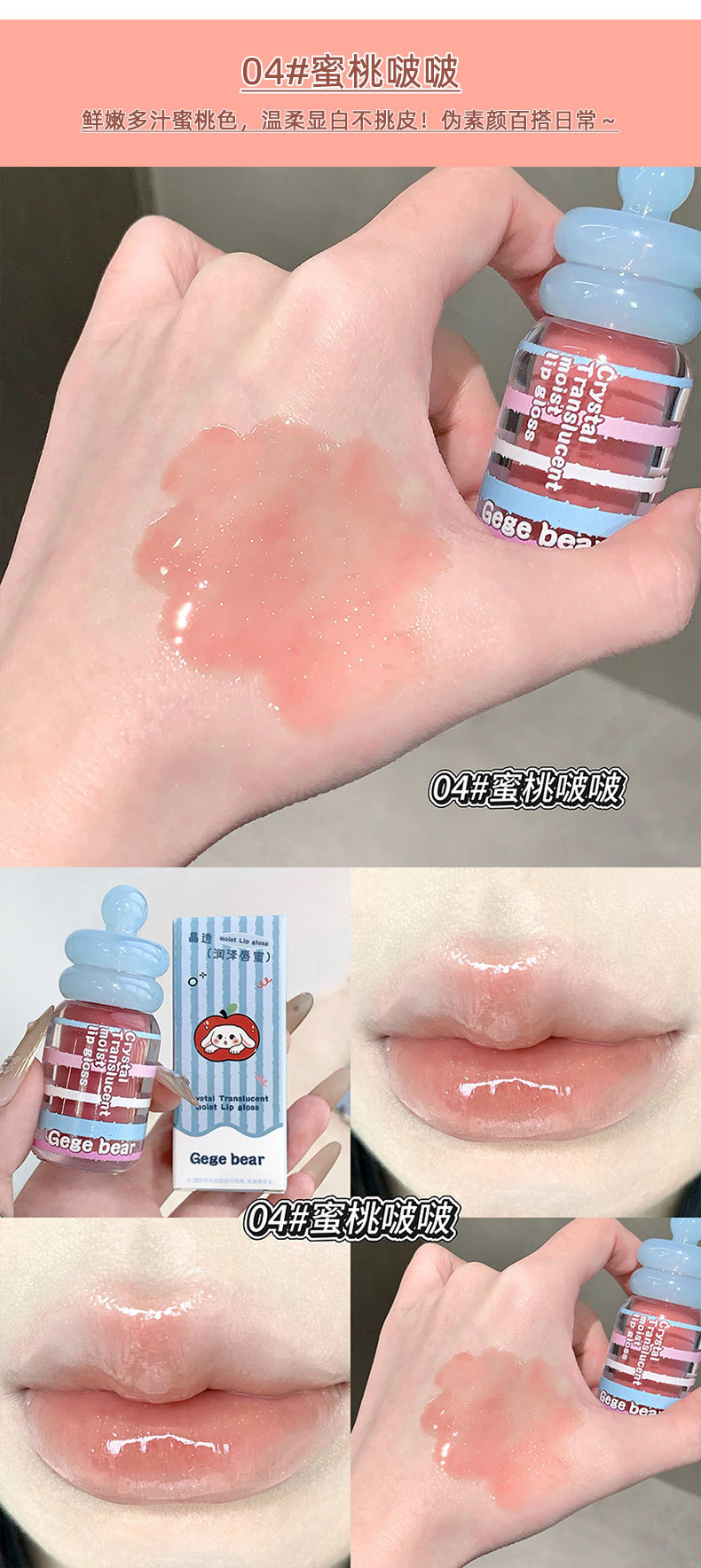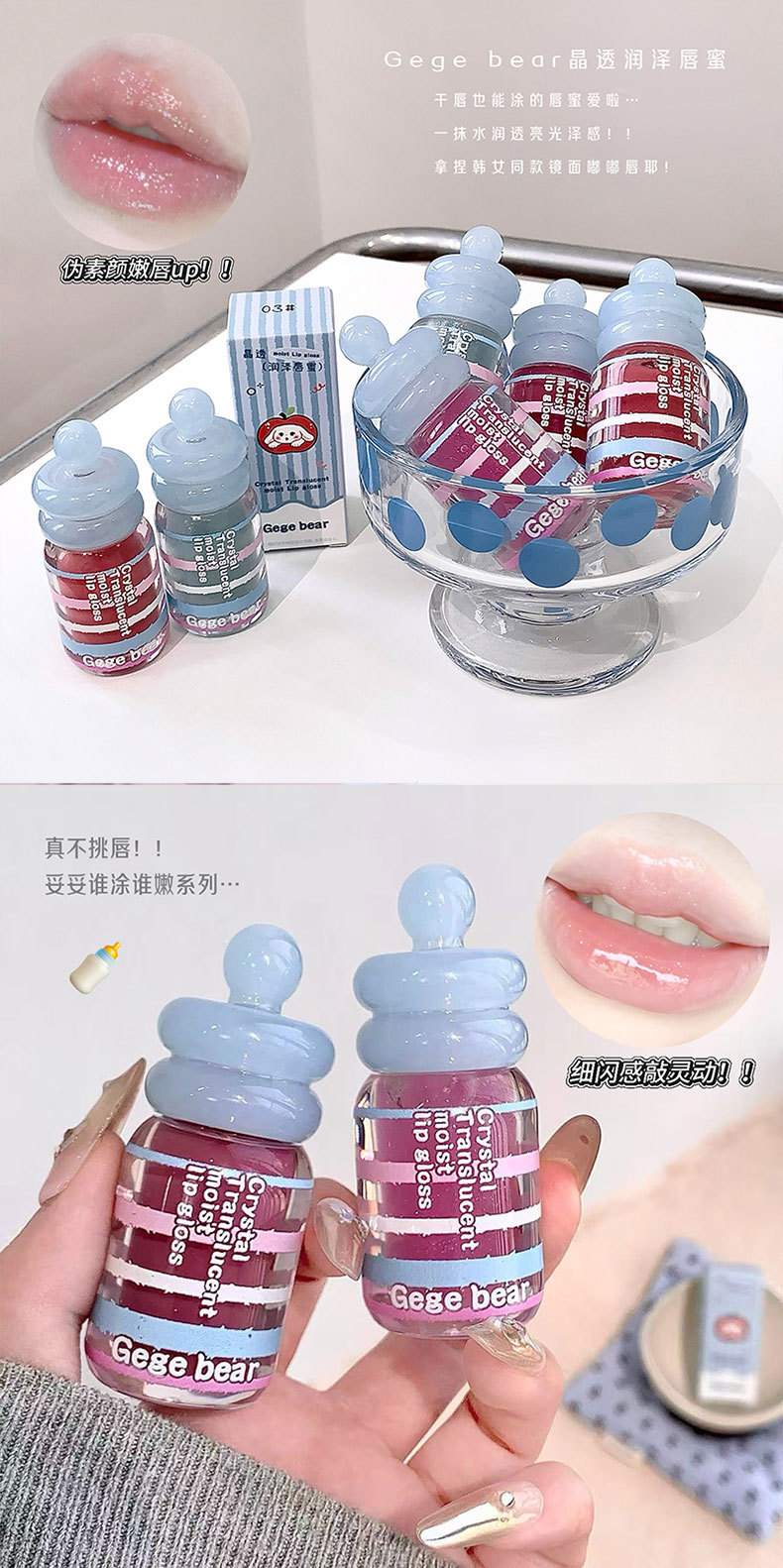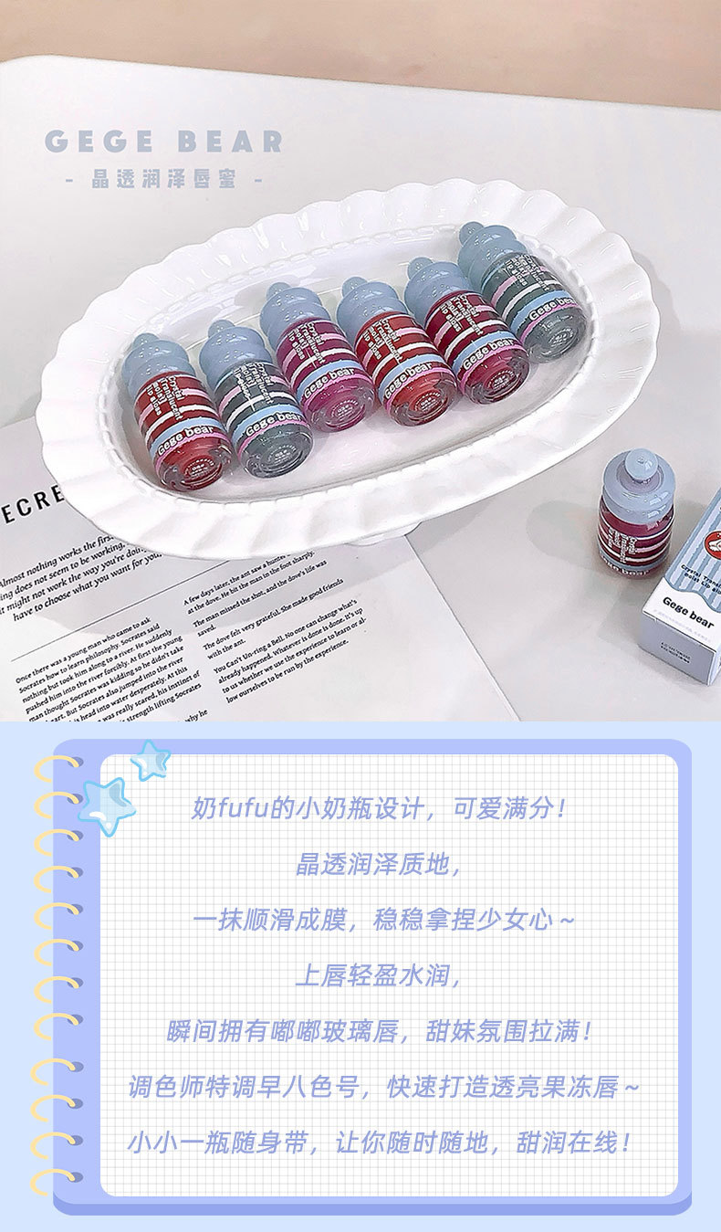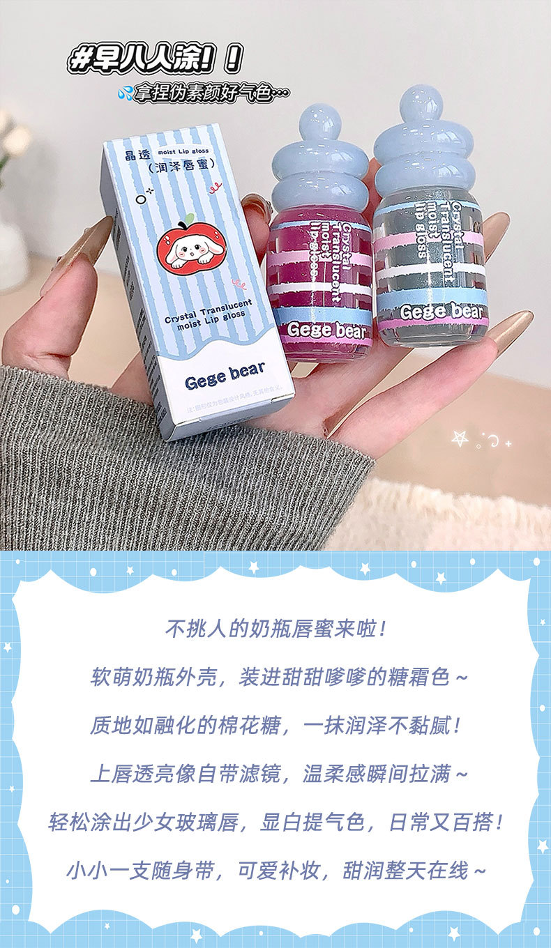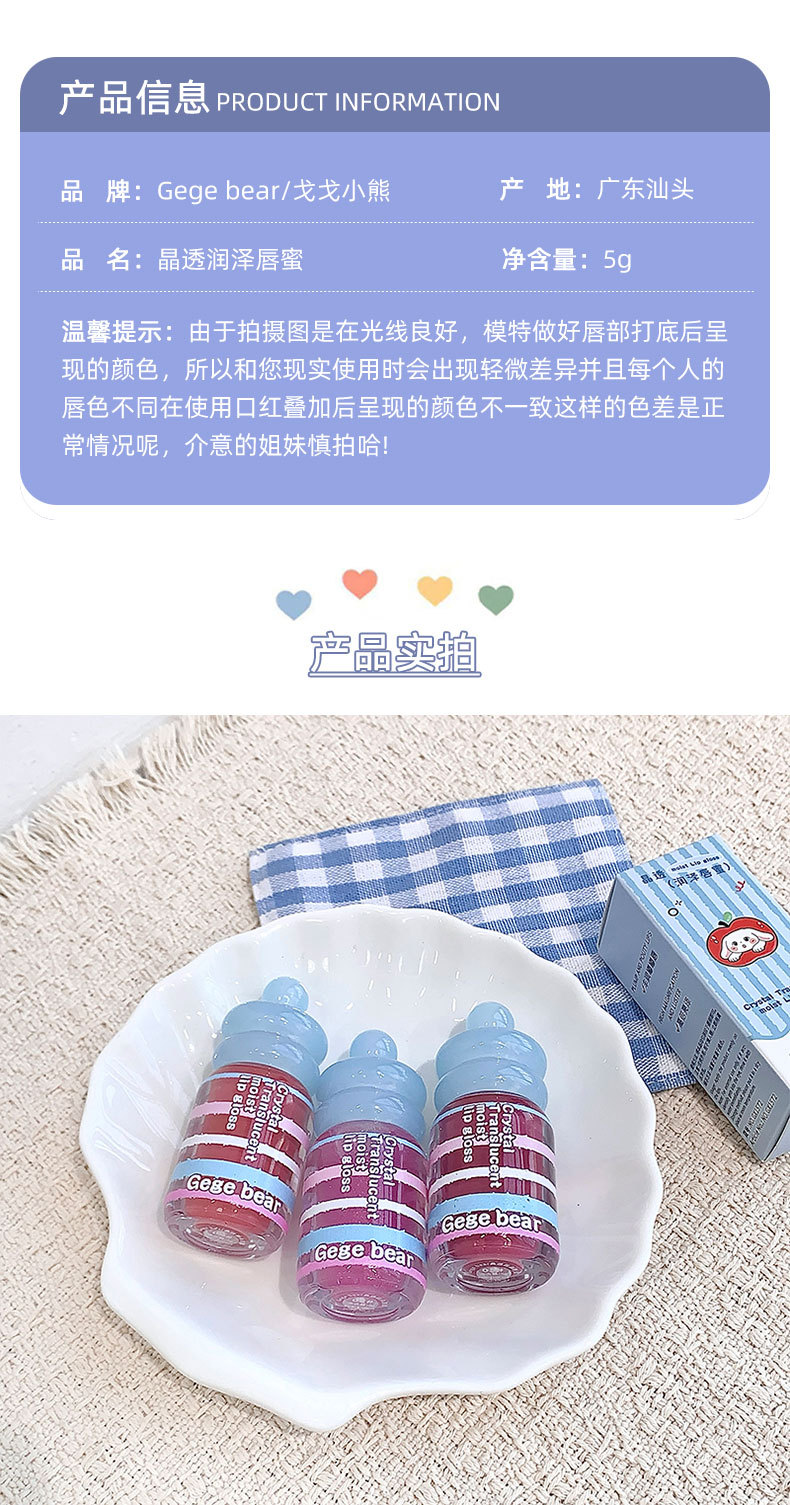 春节不打烊【情人节送礼好物❗️晶透润泽轻盈水润】Gege bear晶透润泽唇蜜 滋润保湿秋冬嘟嘟唇淡化唇纹唇釉美妆。jd