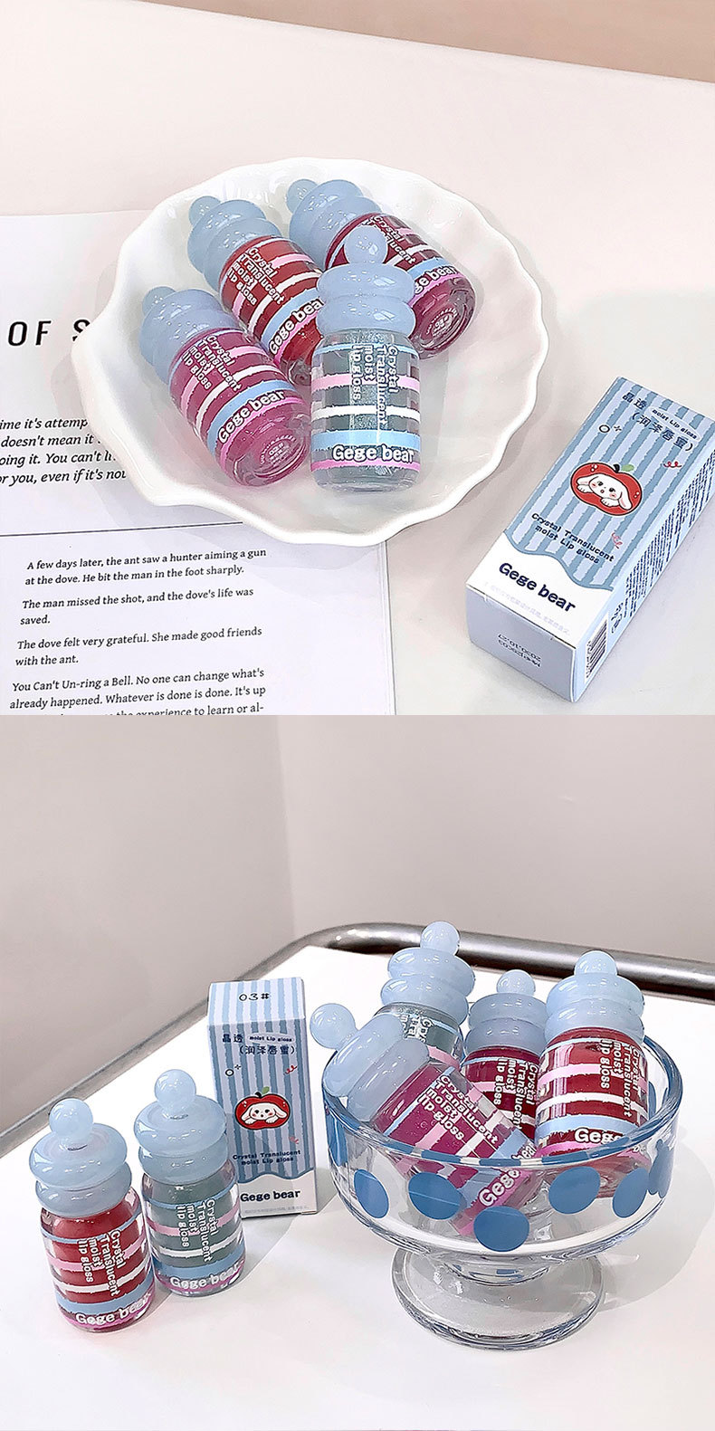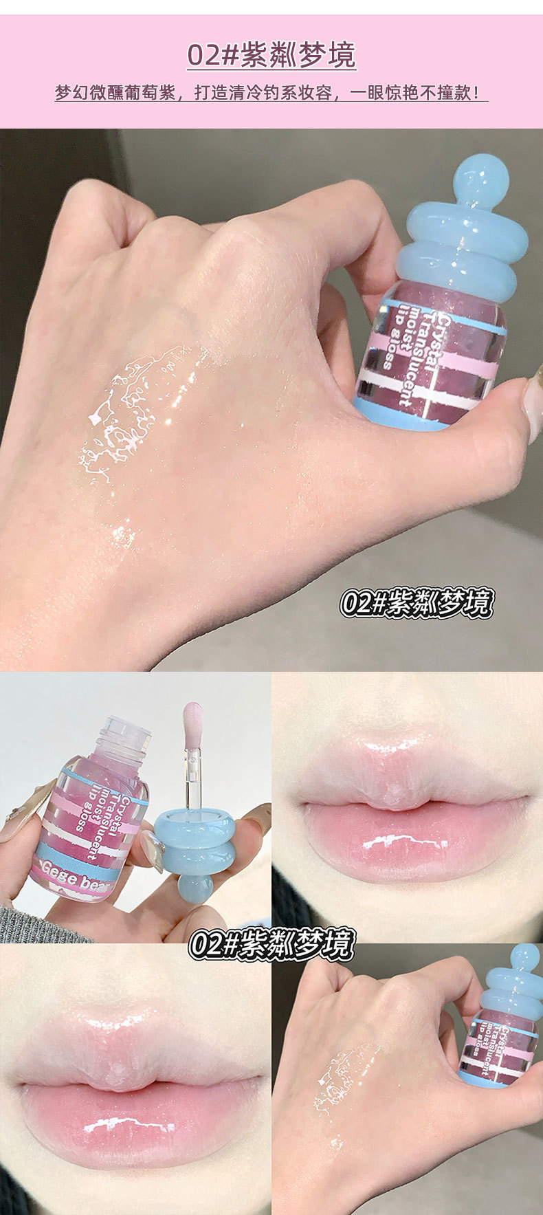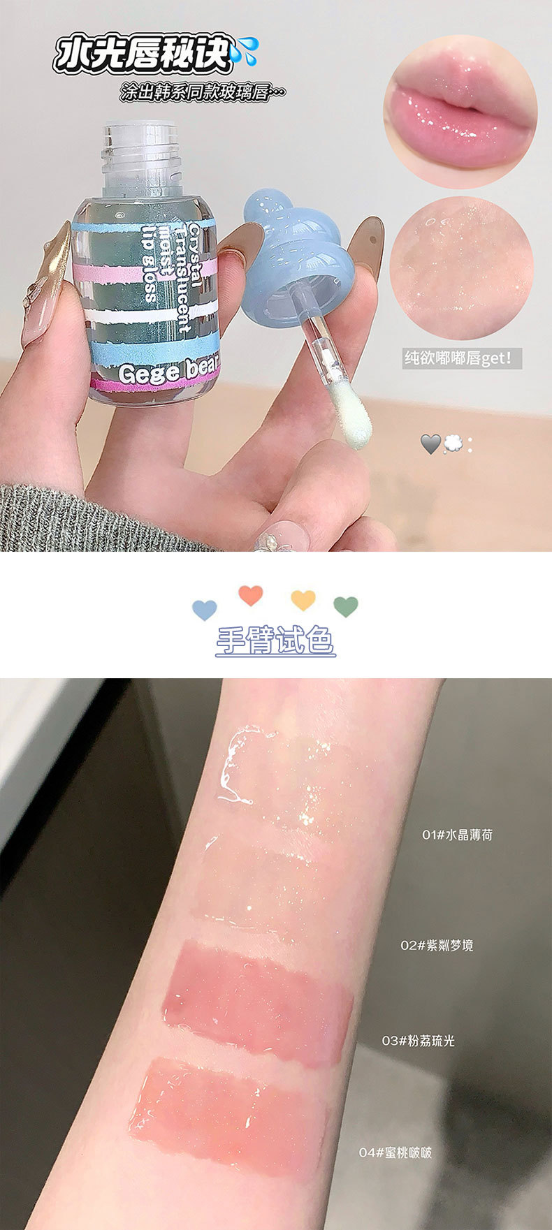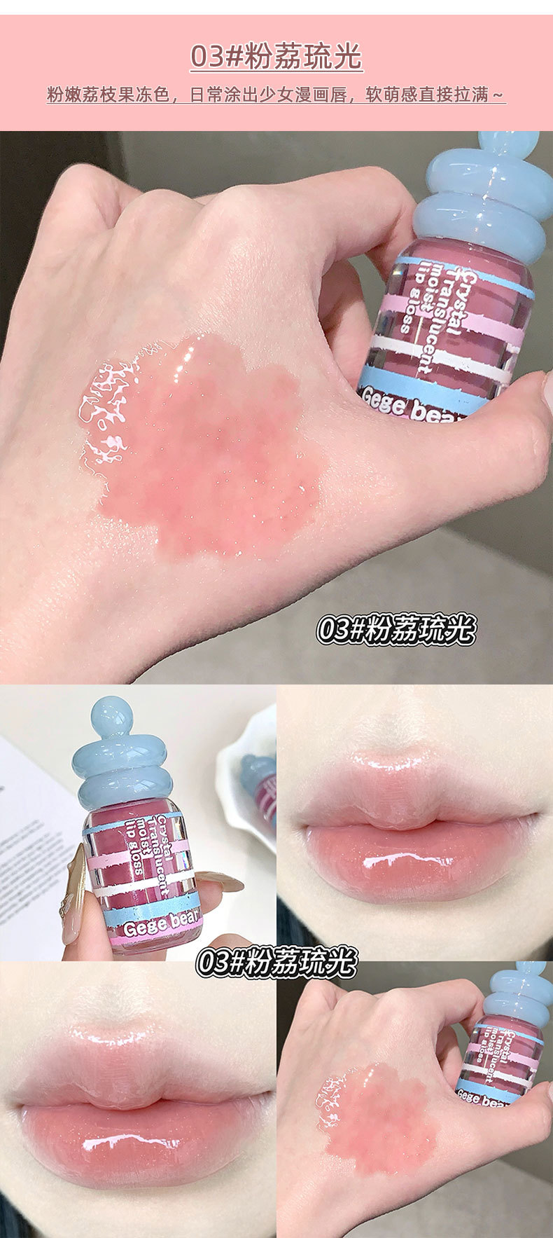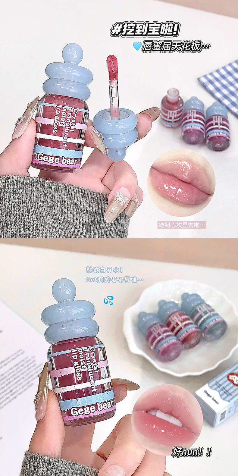 春节不打烊【情人节送礼好物❗️晶透润泽轻盈水润】Gege bear晶透润泽唇蜜 滋润保湿秋冬嘟嘟唇淡化唇纹唇釉美妆。jd