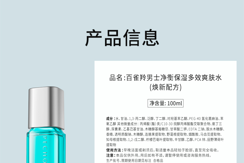 百雀羚男士净衡保湿多效爽肤水100ml(809094)