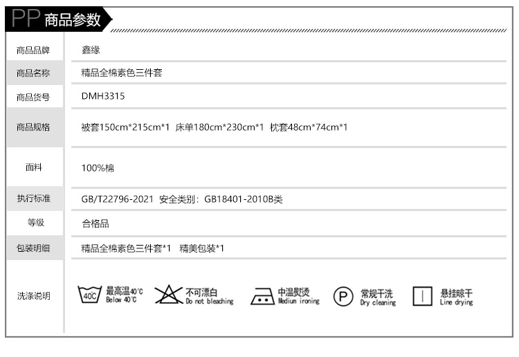 鑫缘 精品全棉素色三件套 DMH3315/DMH3315-1