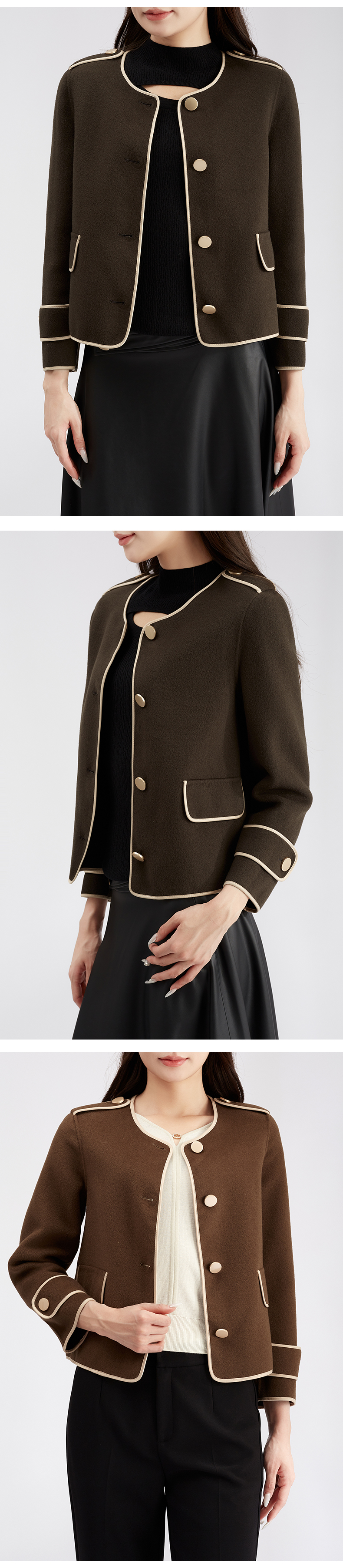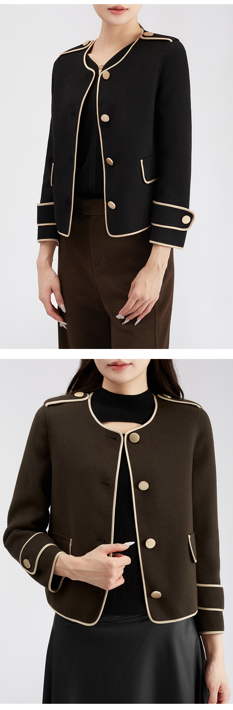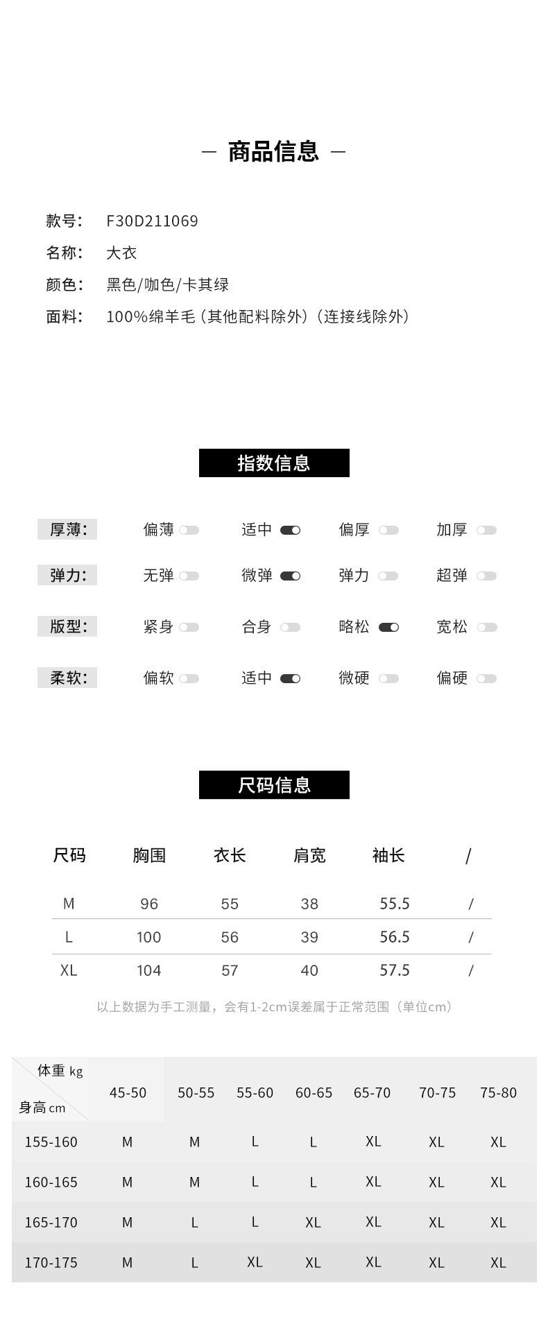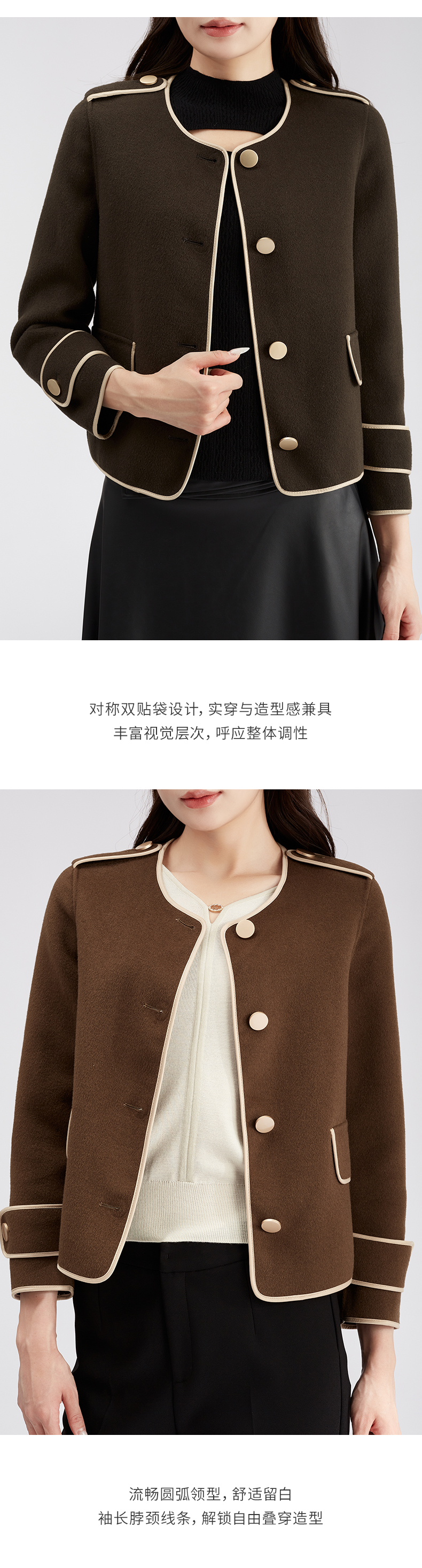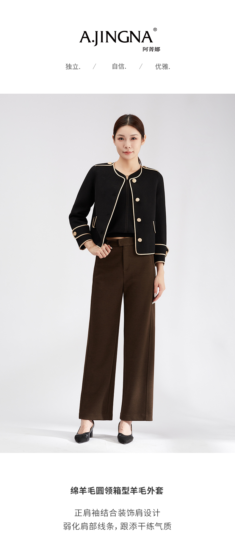 【商城同款】阿菁娜绵羊毛圆领箱型羊毛外套F30D211069