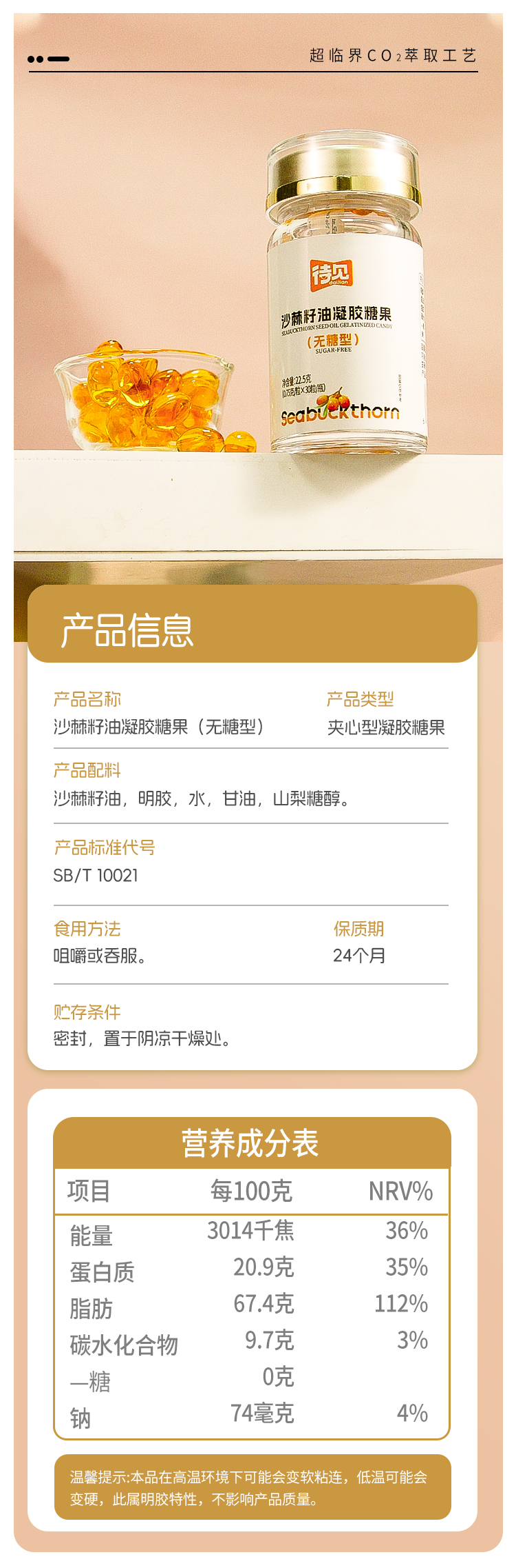 ² 新品首发【山西沙棘果油+沙棘籽油】待见沙棘果油凝胶糖果/沙棘籽油凝胶糖果 0.75g*30粒/瓶 HM02-CRMM-SXSJ