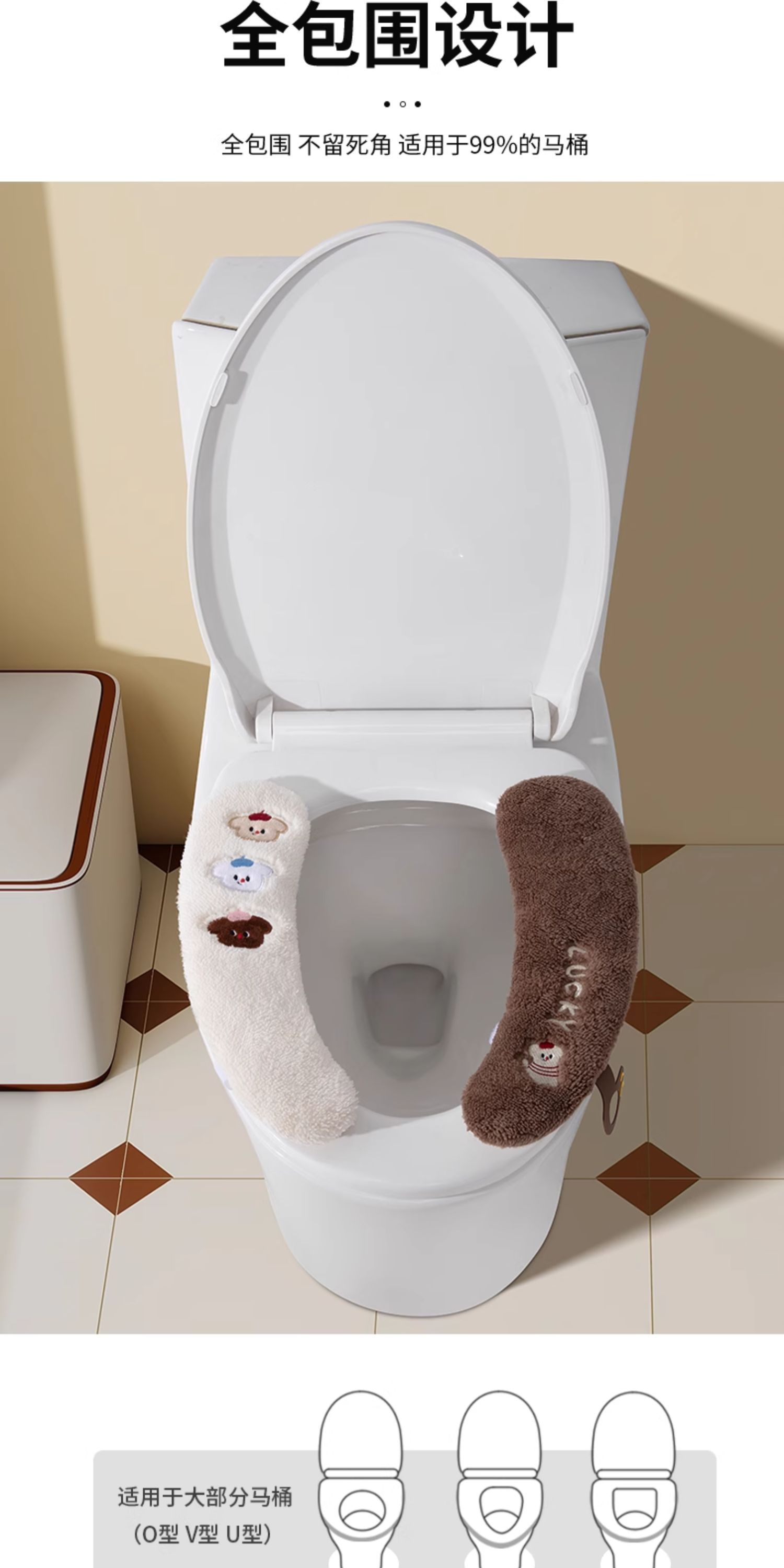 双11限时秒杀❗【柔软亲肤!加厚保暖】自带提手,全包围设计,秋冬马桶坐垫新款防水可爱家用抑菌马桶贴四季通用粘贴式马桶垫子。rc