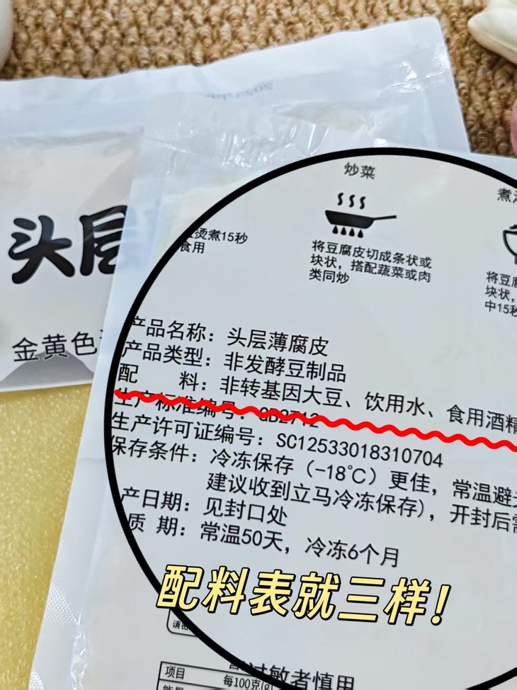 它的配料表非常简单,正因为用料纯粹 所以营养才到位‼️ 纯手工的制作方式保留了它天然的豆香味 却不会遮盖其他食材的味道✨ 🔺煮汤的时候,煮火锅加一点进去 既丰富了口感,又增加了营养 软嫩的豆腐皮,美味和营养都是满分哦💯