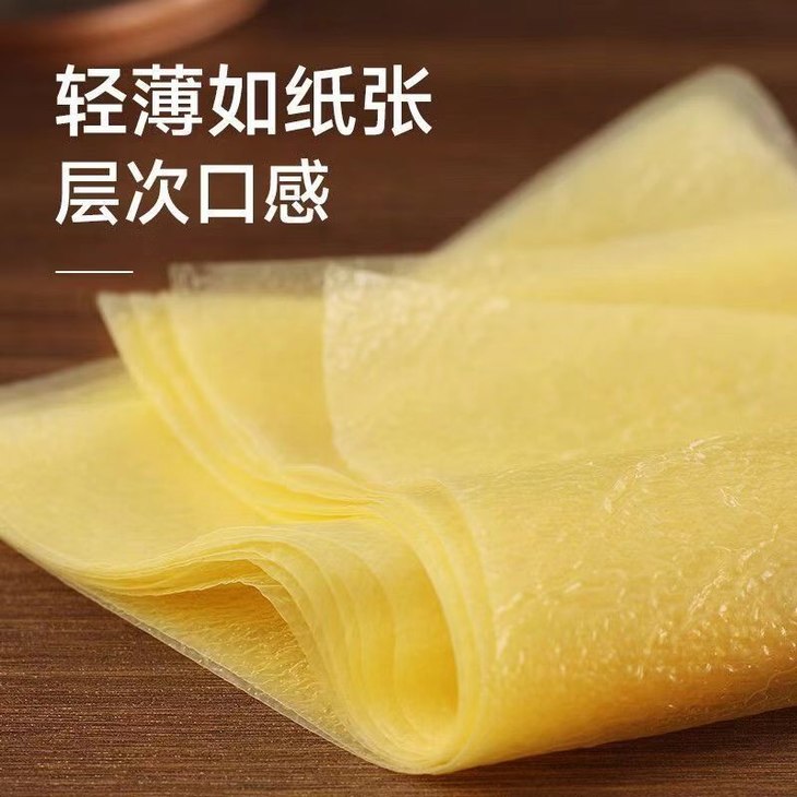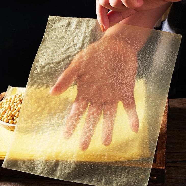 头层薄腐皮因其独特的口感和吸味能力,在烹饪中有着广泛的应用。 无论是简单的凉拌、炒菜,还是复杂的炖煮、火锅,都能完美融合其中。 特别是在制作响铃卷、腐竹等特色菜肴时,头层薄腐皮更是不可或缺的重要材料。 此外,头层薄腐皮还非常适合创新料理。 它能够轻易包裹各种馅料,做成各式各样的卷类食物,不仅美观,而且口感丰富。 无论是家庭聚会还是朋友聚餐,头层薄腐皮都能轻松驾驭,成为餐桌上的亮点✨✨