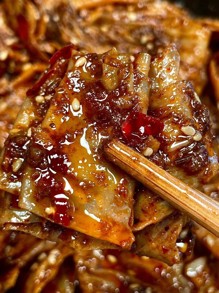 原浆豆皮,皮薄质地透亮 是大片状的,不仅可以上述吃法,还可以裹上馅料,卷起来,做豆皮春卷,卷煎等🌟