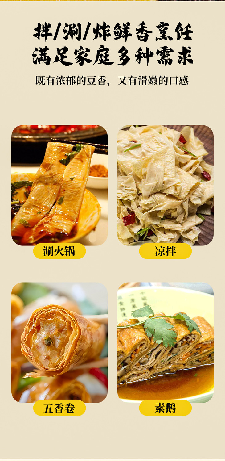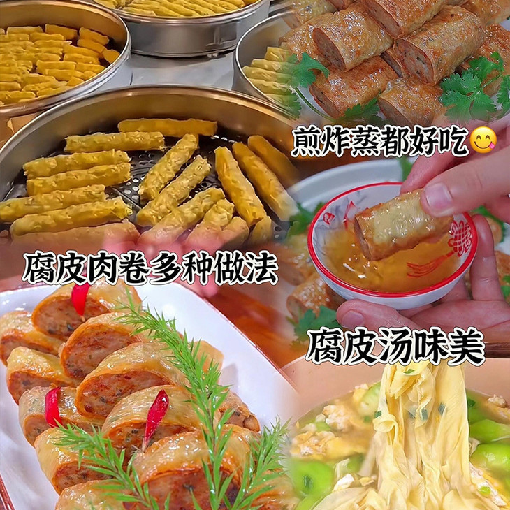 🏆豆腐皮因为富含多种营养物质,一直有“植物肉”的美称。 ✨丰富的优质蛋白质、卵磷脂和钙质等微量元素, ✨柔软且劲道的口感,健康美味且不易发胖。