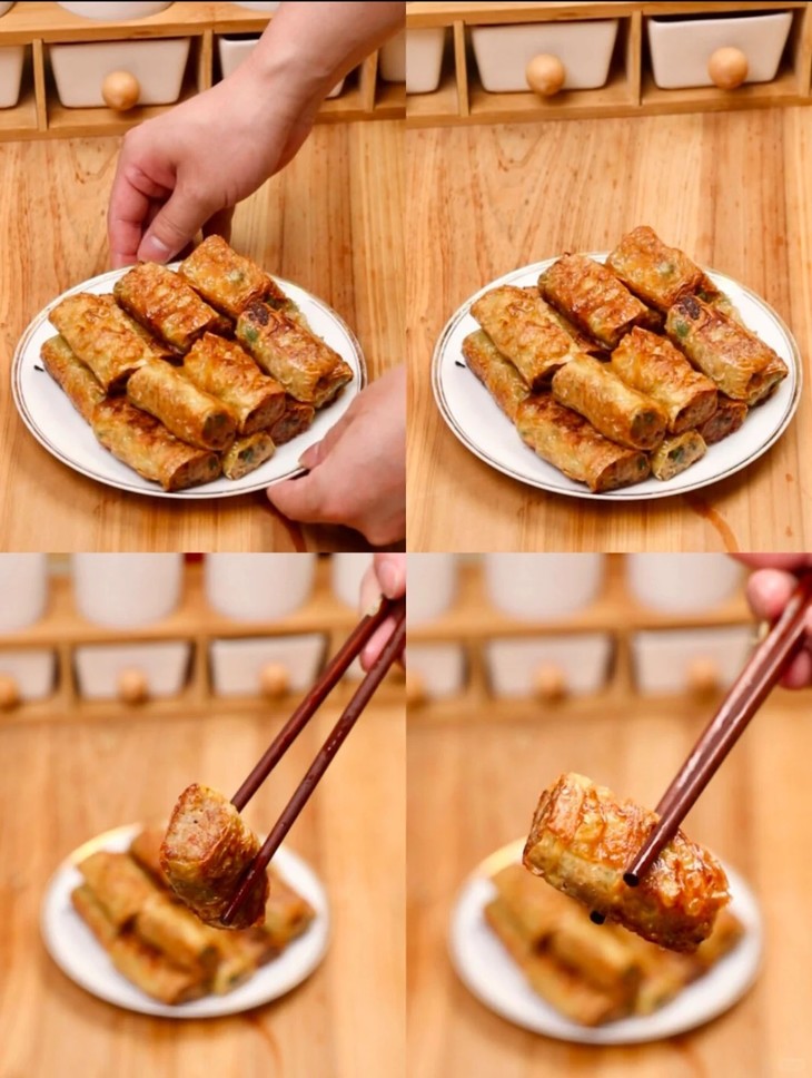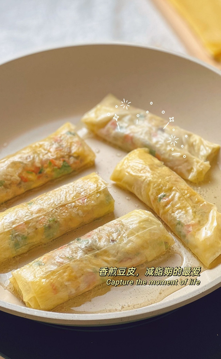 🔺家常美味-香煎头层薄腐皮 调馅儿,荤素皆可,用豆皮卷上馅儿~ 平底锅煎熟,或者直接蒸锅蒸熟✔️ 豆香混合着菜香、肉香… 低脂高蛋白,吃起来也没负担 一口气可以炫个七八个不嫌多😋