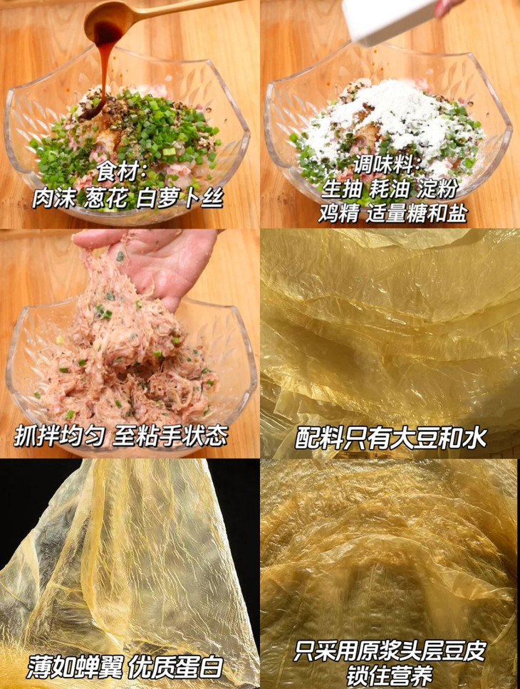 除了做卷煎,凉拌,煮汤,涮火锅 还可以包上一碟豆腐皮包子~ 红楼梦里林妹妹最爱吃『豆腐皮包子』 晶莹剔透带着点韧劲✨ 低脂高蛋白,管理期的碳水就可以换成它