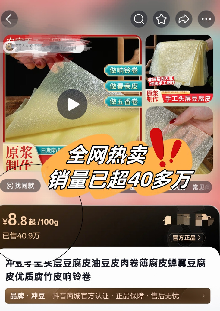 😻全网热卖🔥薄如蝉翼的腐皮❗️💰19.9抢约75张【头层薄腐皮】❗豆香醇厚😋细滑鲜嫩,蛋白质满点,易吸收 ✅用料纯粹✨精选非转基因大豆➕饮用水,原浆制作,脉络清晰,嫩滑有韧性