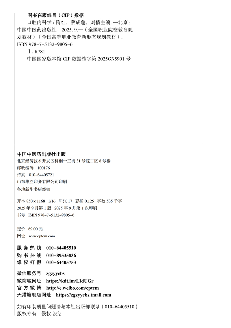 口腔内科学 全国高等职业教育新形态规划教材 隋红 蔡成莲 刘倩 供口腔医学口腔医学技术口腔卫生保健等专业使用 中国中医药出版社