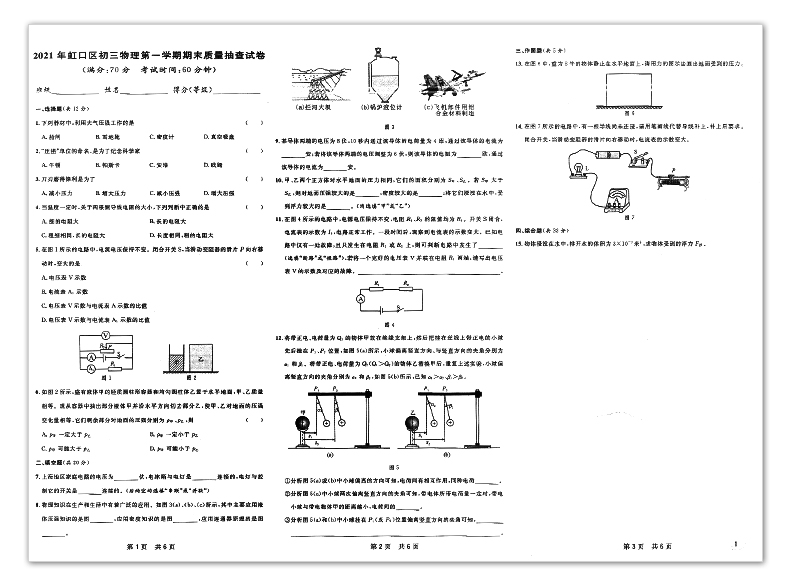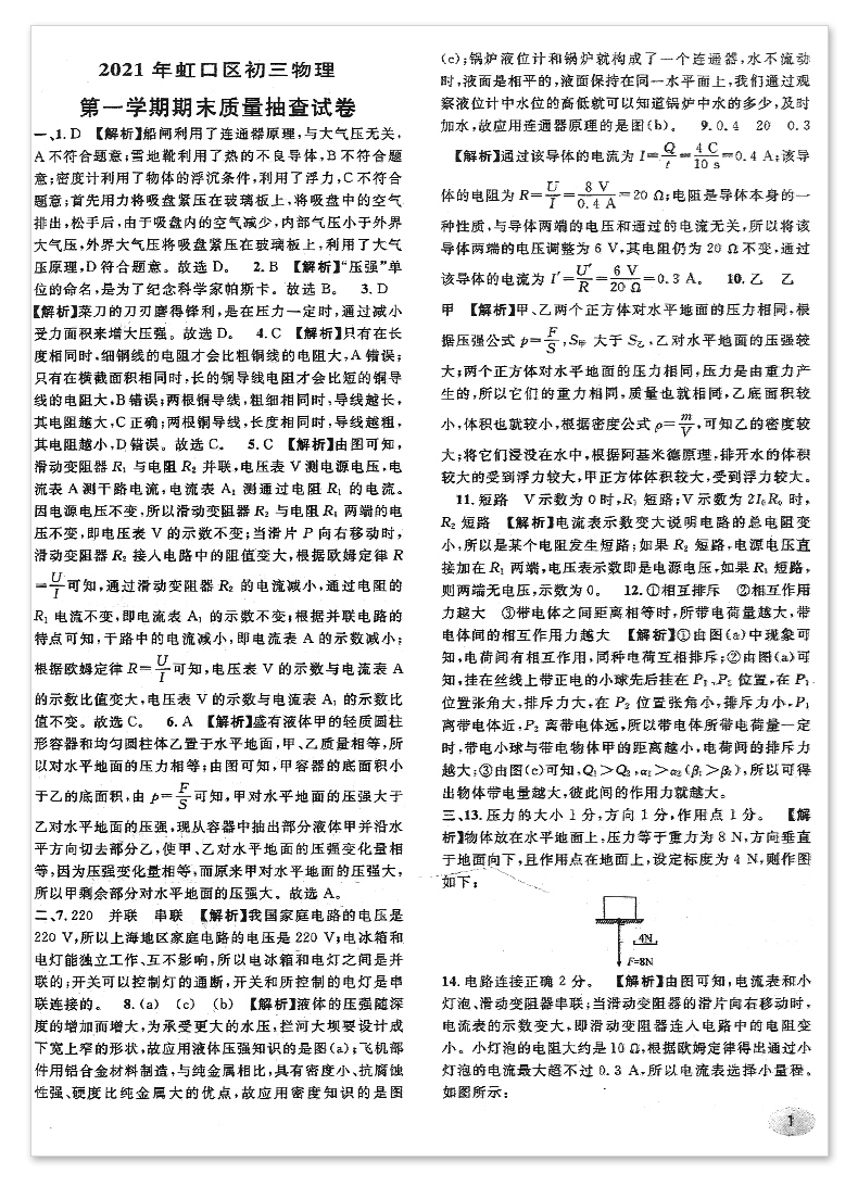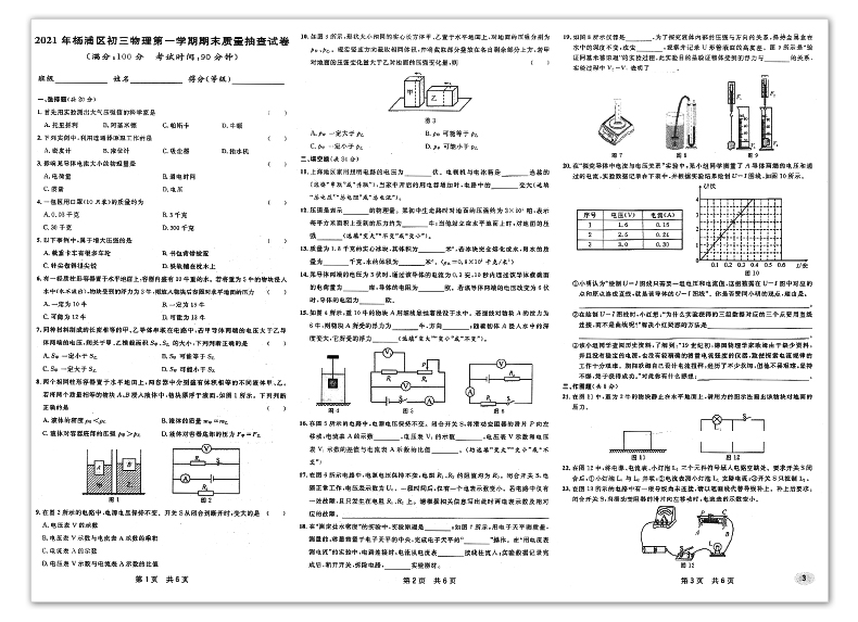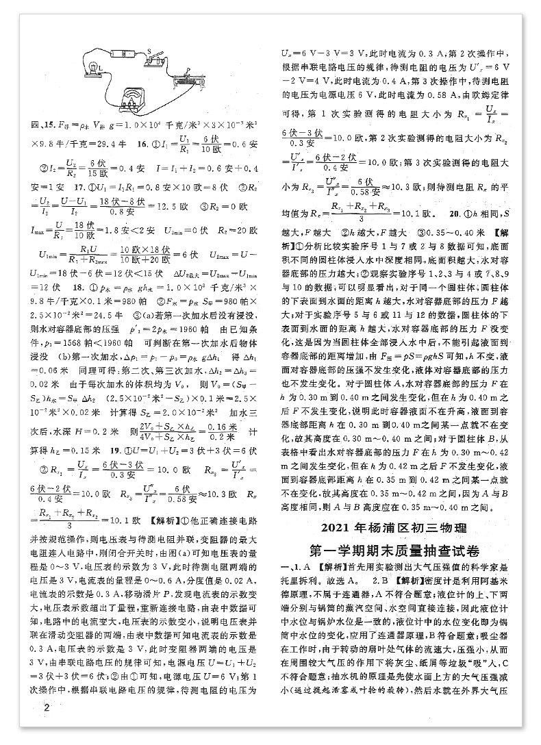 2021-2017中考实战真题卷 物理 中考一模卷 5年合订本 附答案详解 上海市区县初三第一学期期末质量抽查试卷 一模卷复习