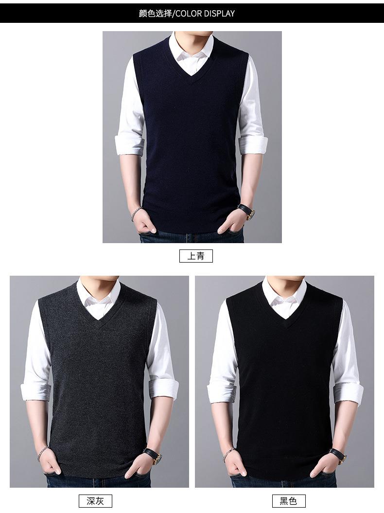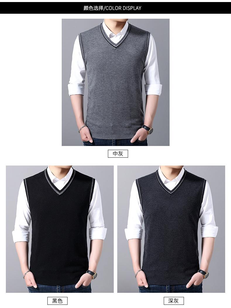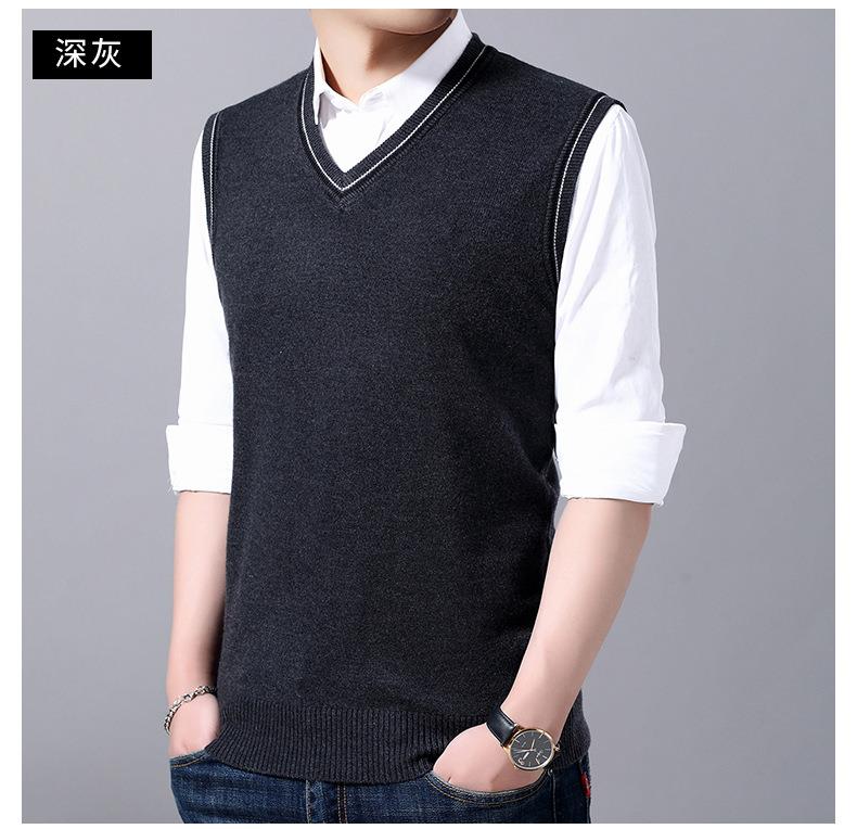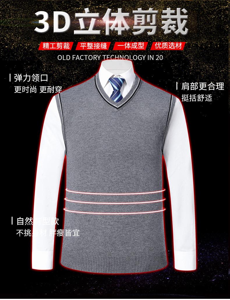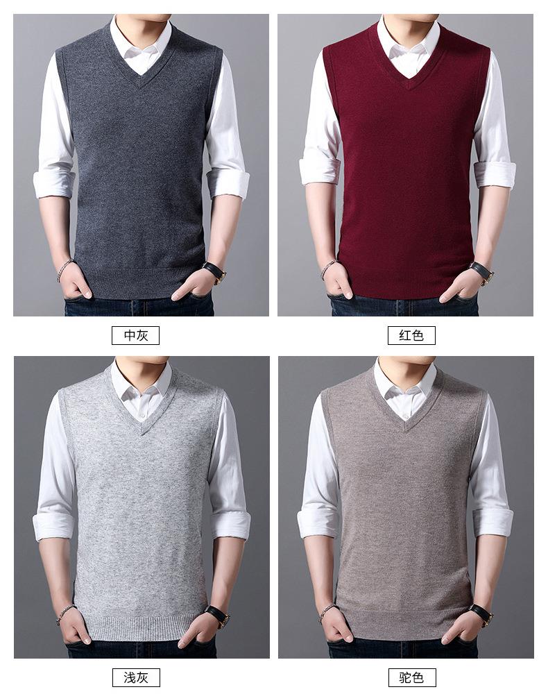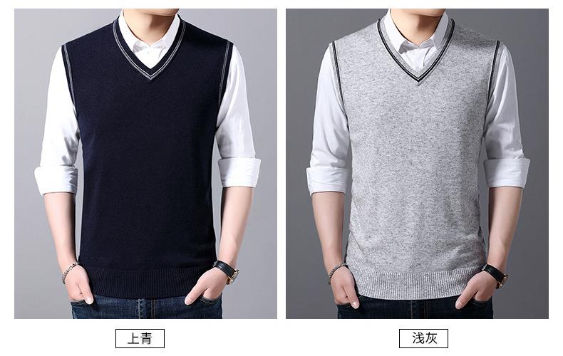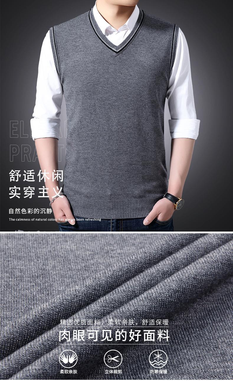 含毛混纺秋冬季男士含羊毛背心中年商务休闲V领织织毛衣男装马甲