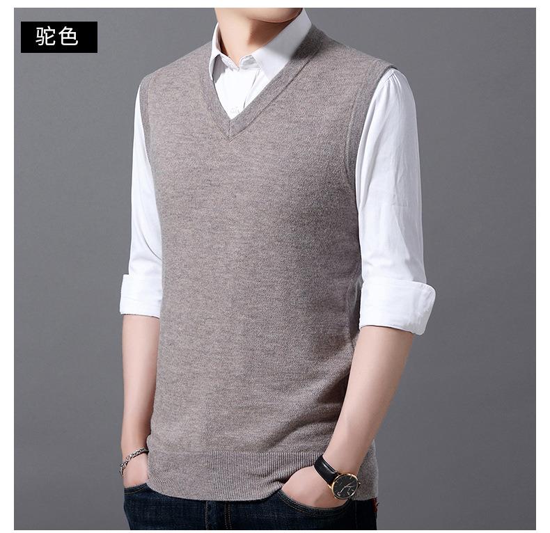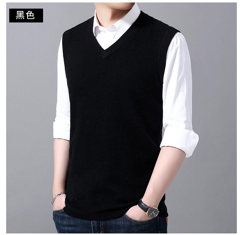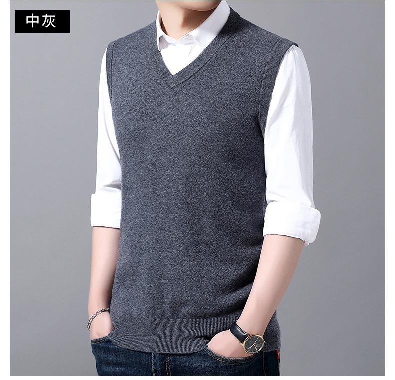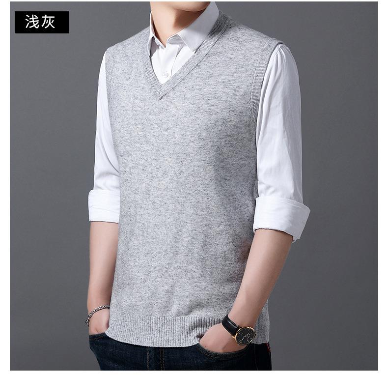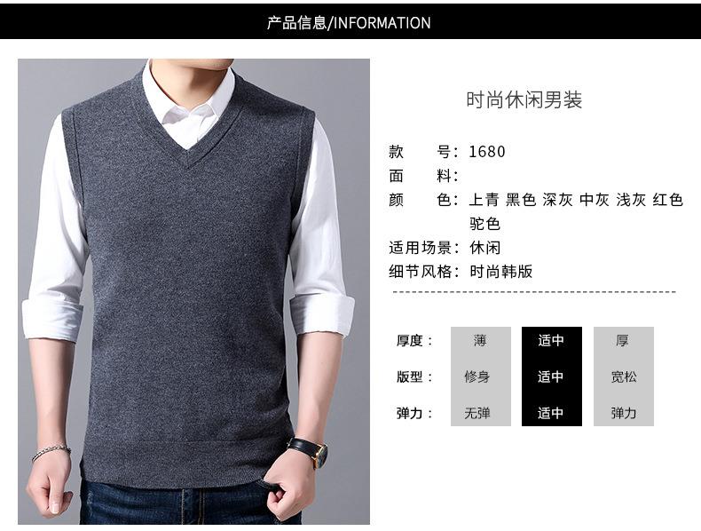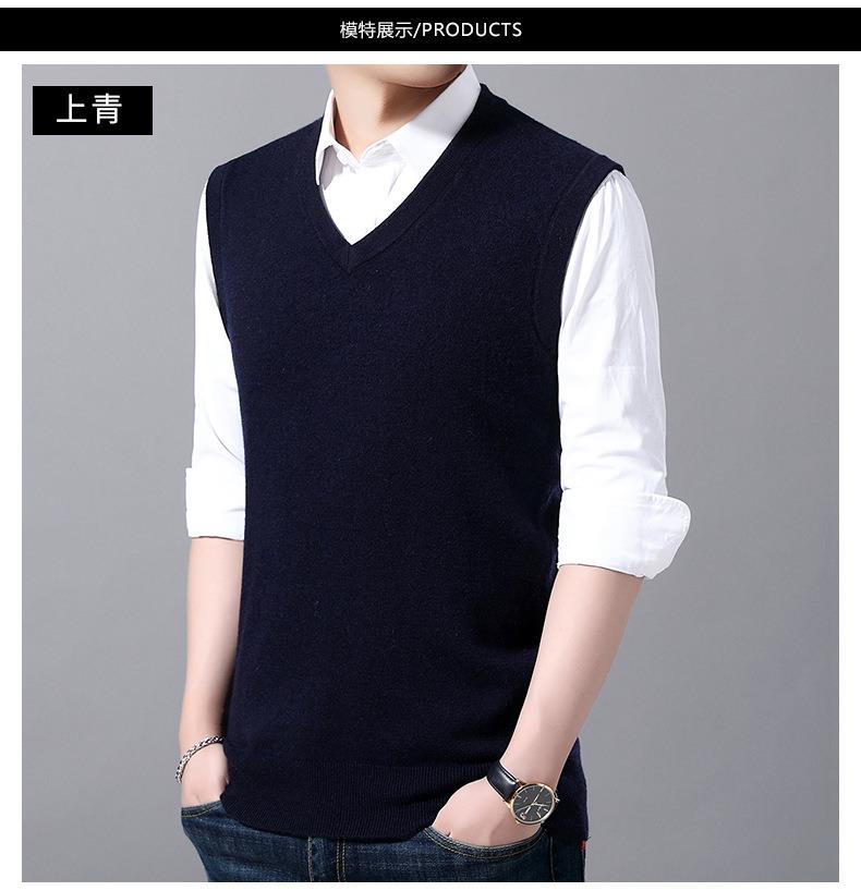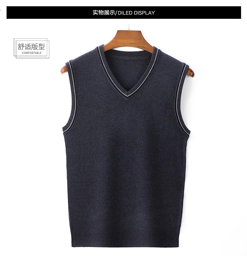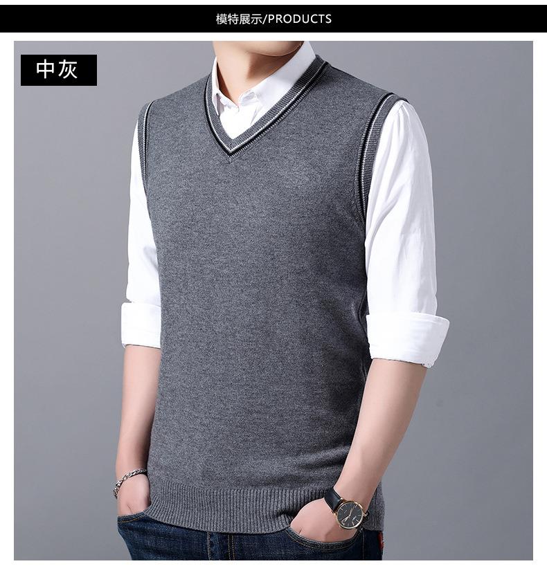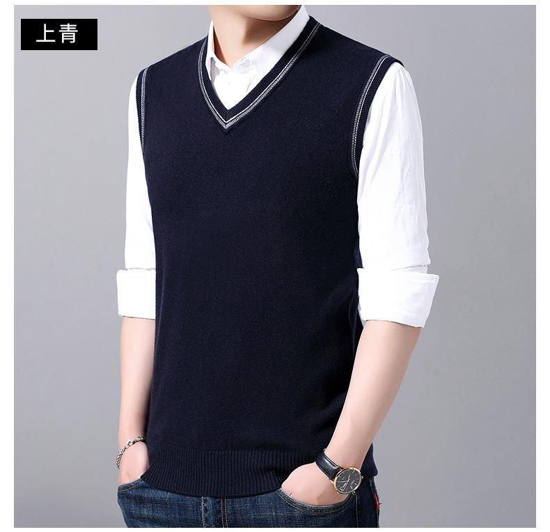含毛混纺秋冬季男士含羊毛背心中年商务休闲V领织织毛衣男装马甲
