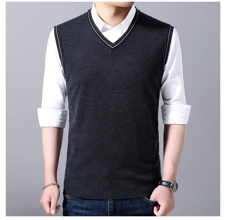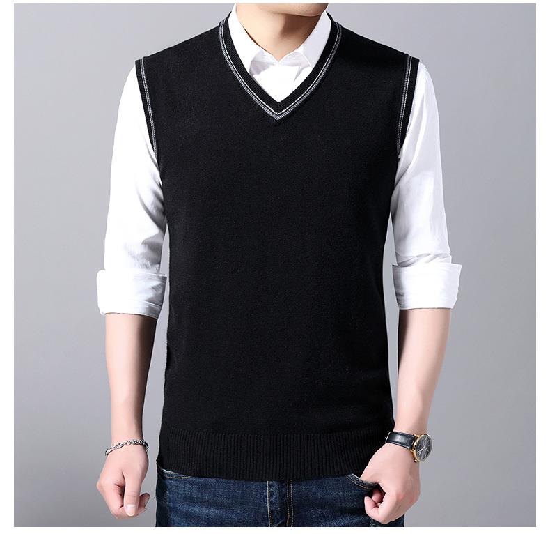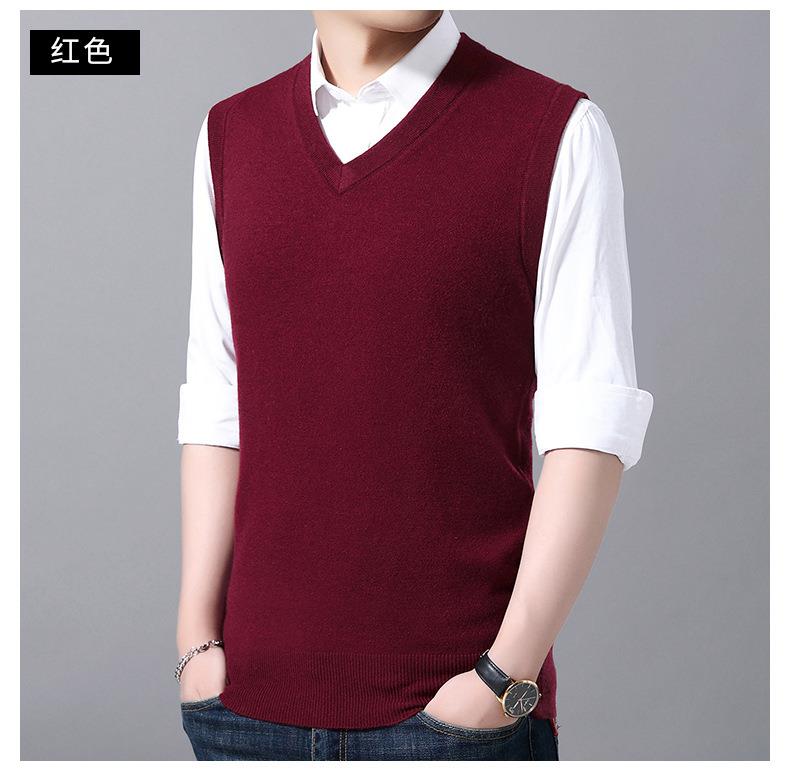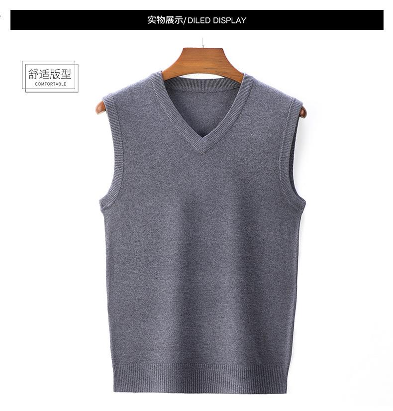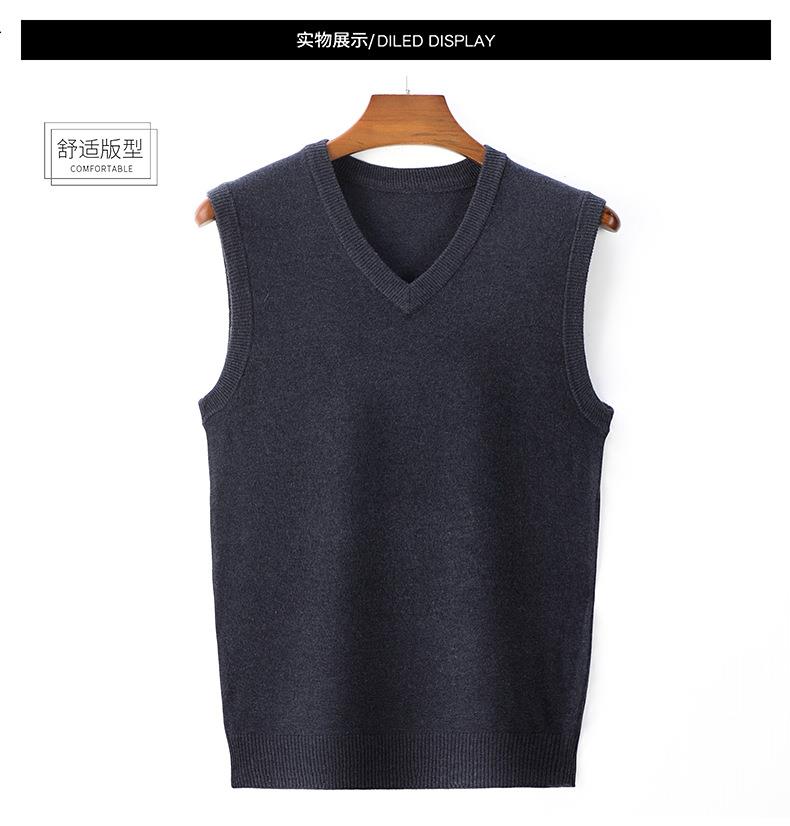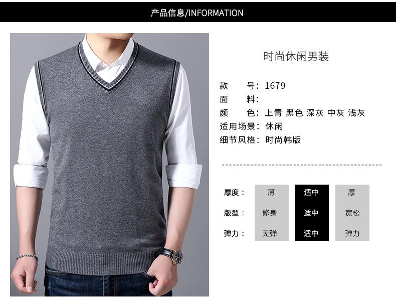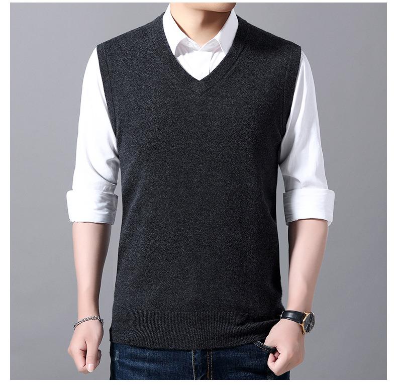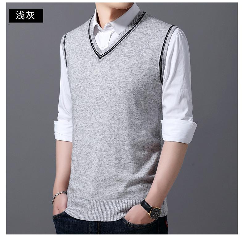 含毛混纺秋冬季男士含羊毛背心中年商务休闲V领织织毛衣男装马甲