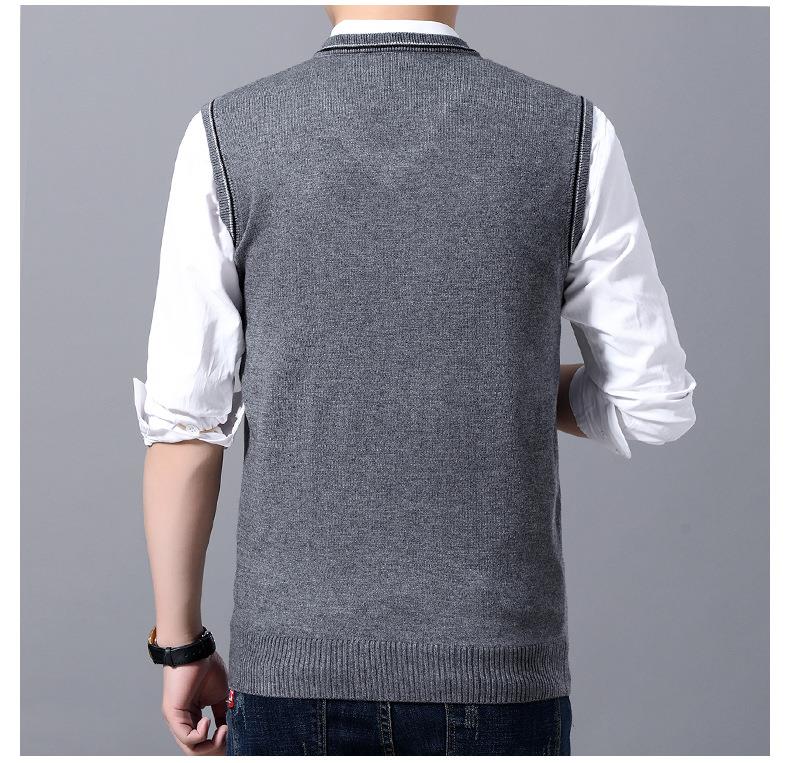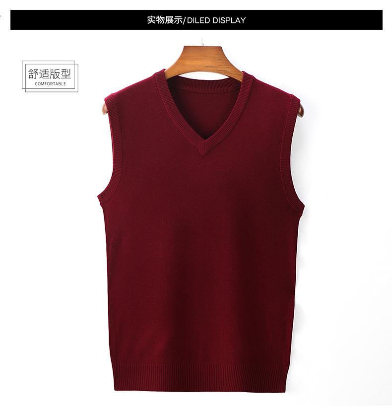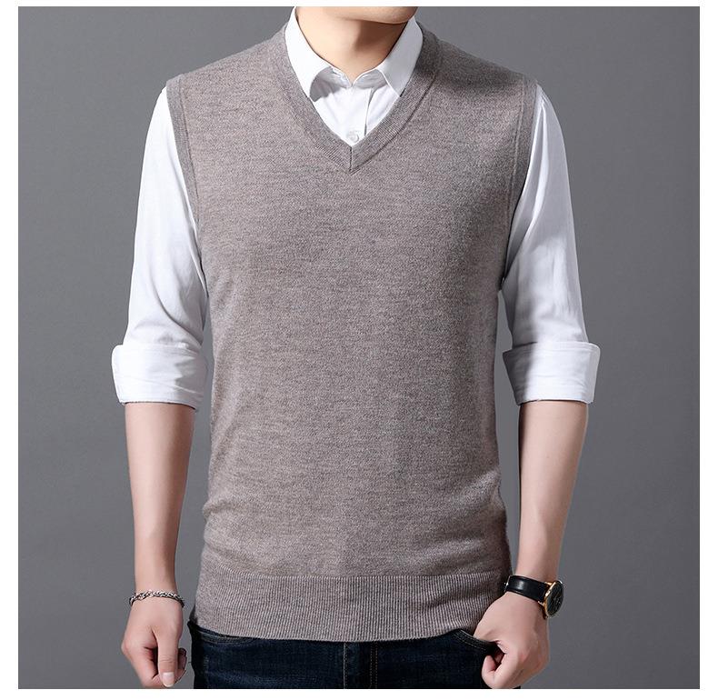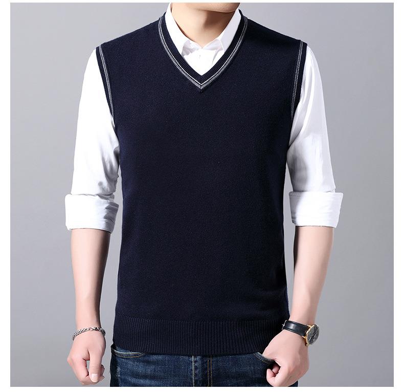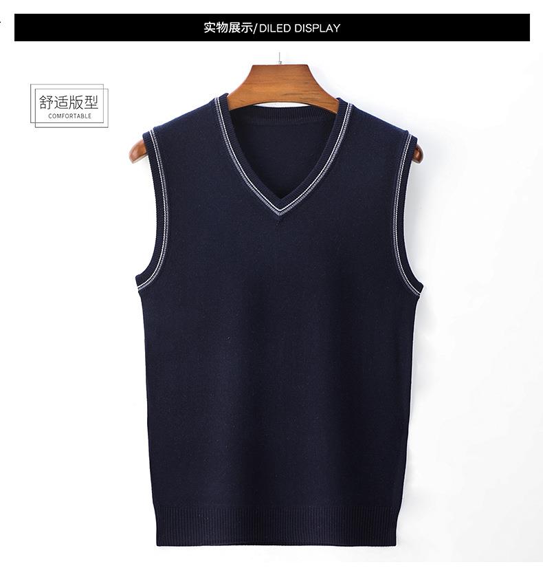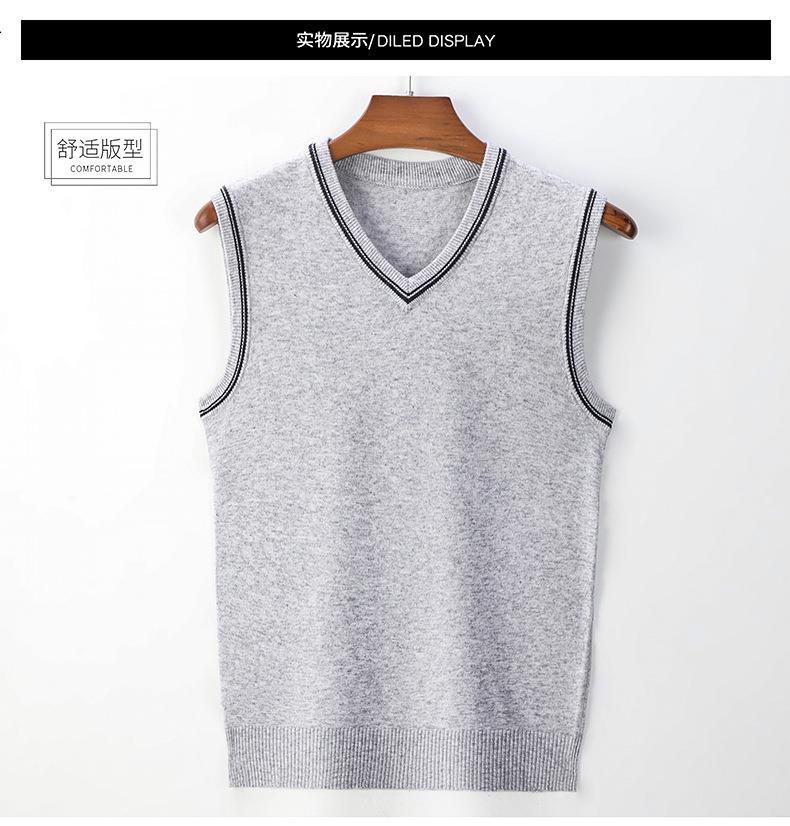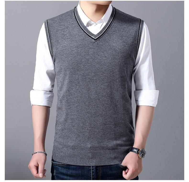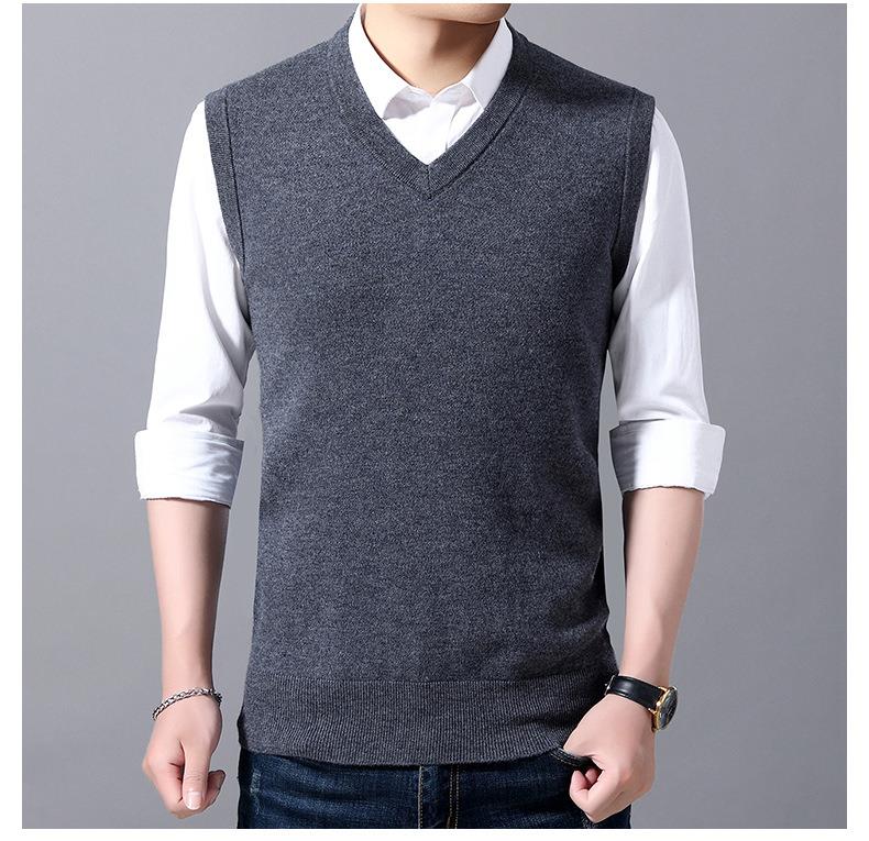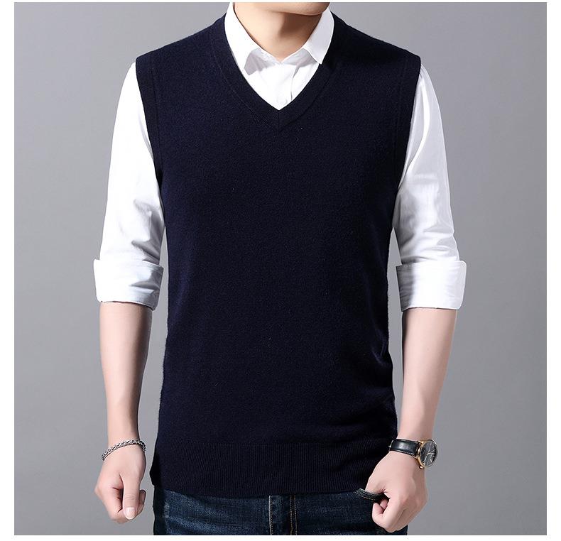 含毛混纺秋冬季男士含羊毛背心中年商务休闲V领织织毛衣男装马甲
