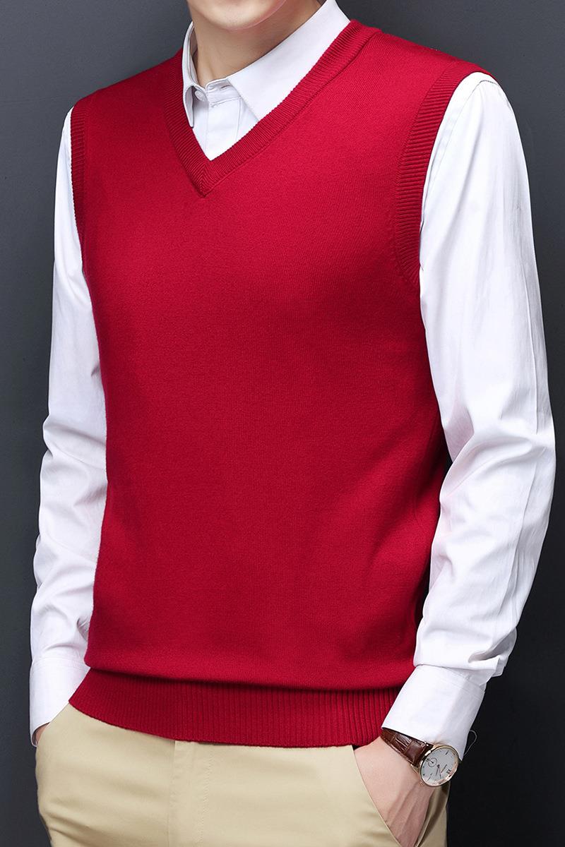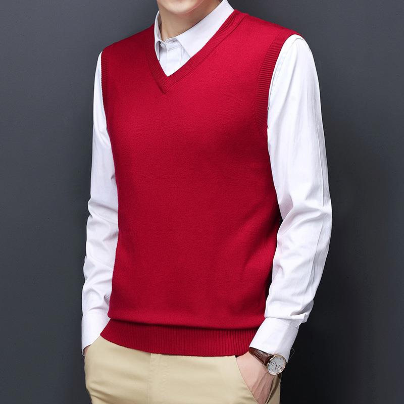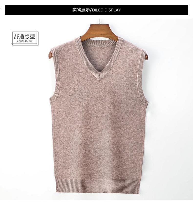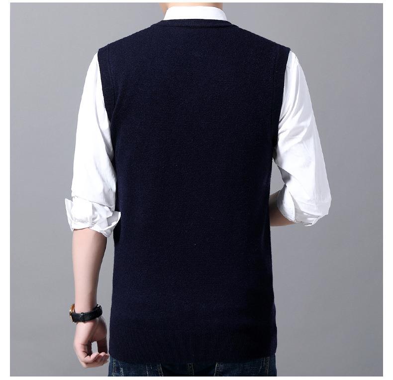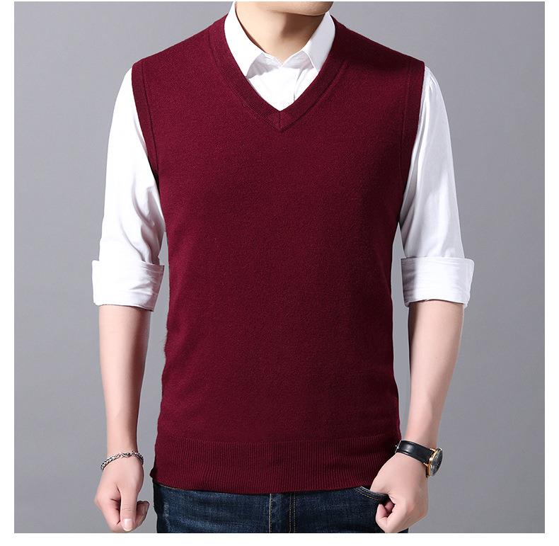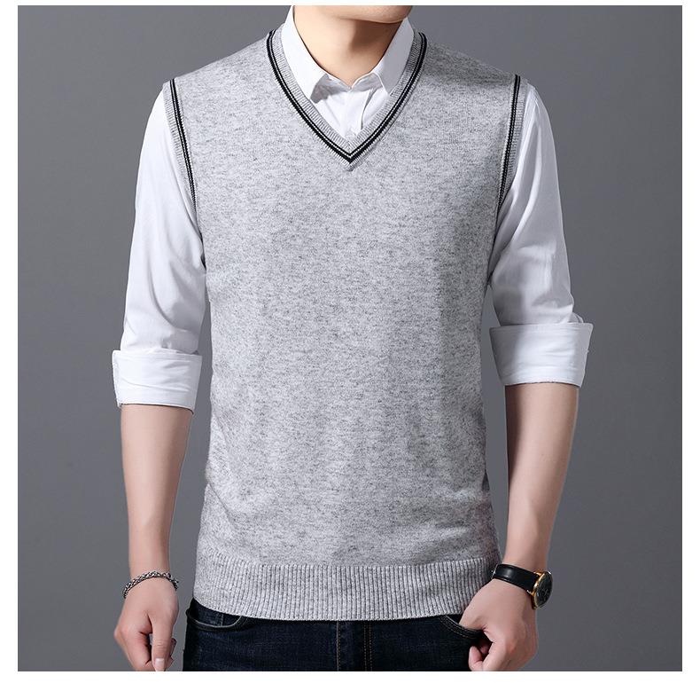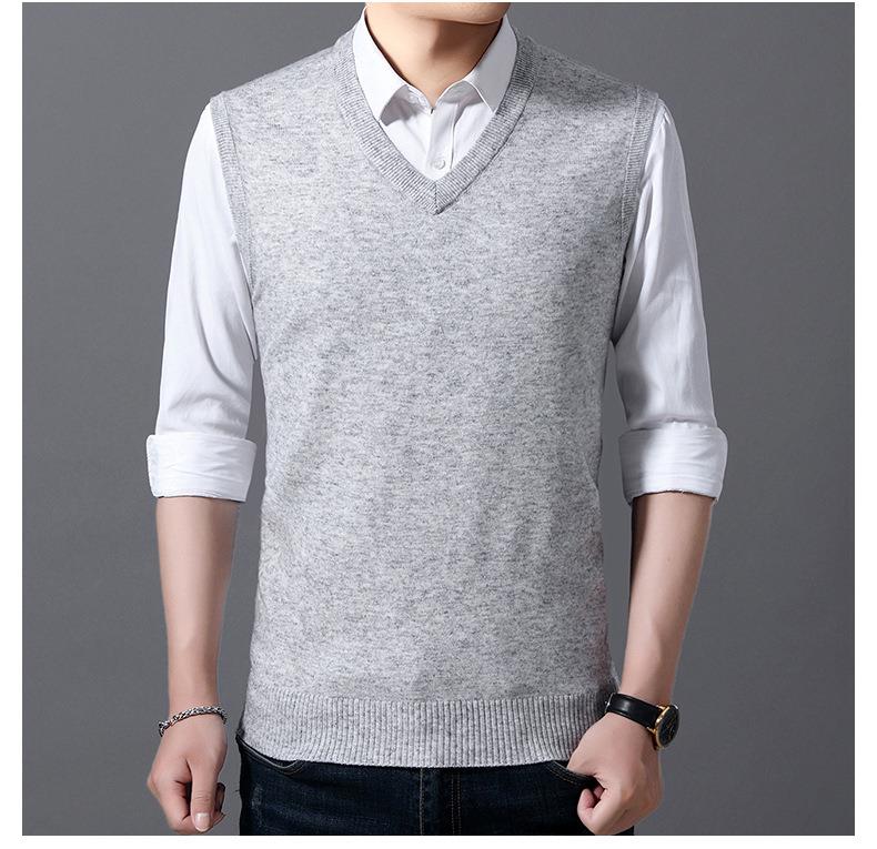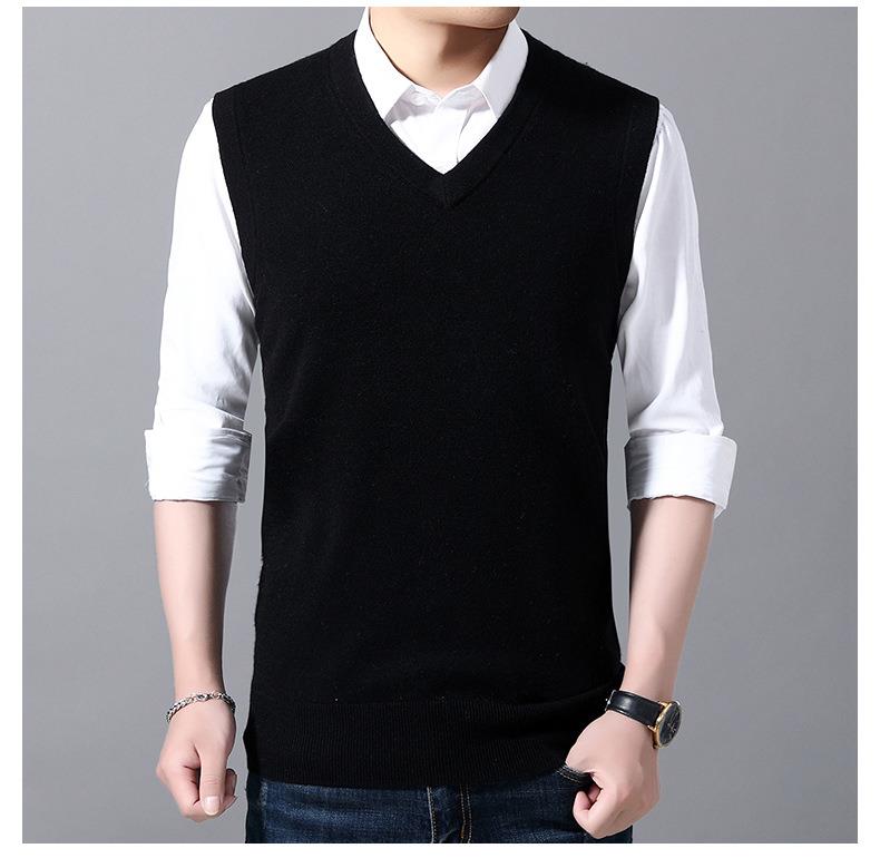 含毛混纺秋冬季男士含羊毛背心中年商务休闲V领织织毛衣男装马甲