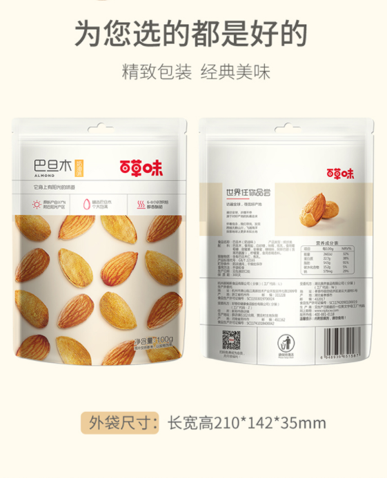 百草味 每日坚果炒货 干果休闲零食扁桃仁 手剥特产奶油味巴旦木100g/袋