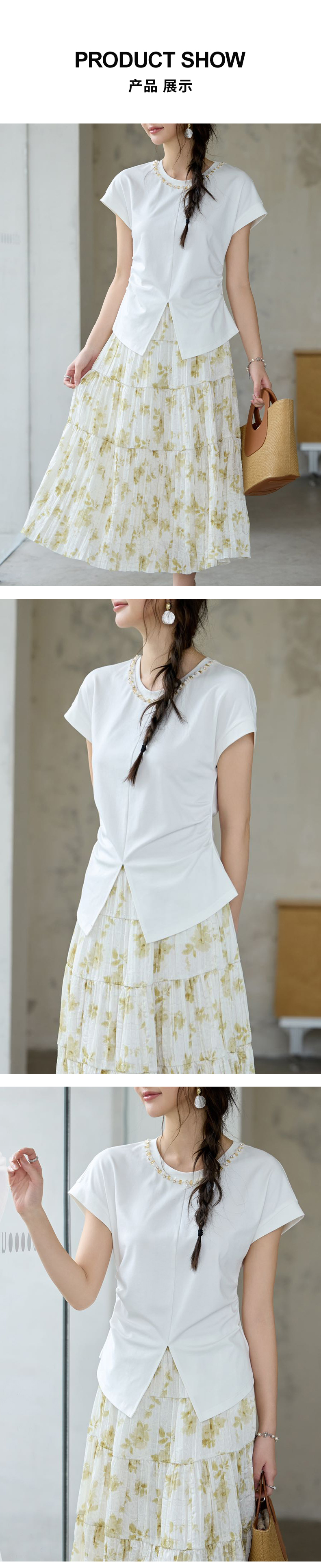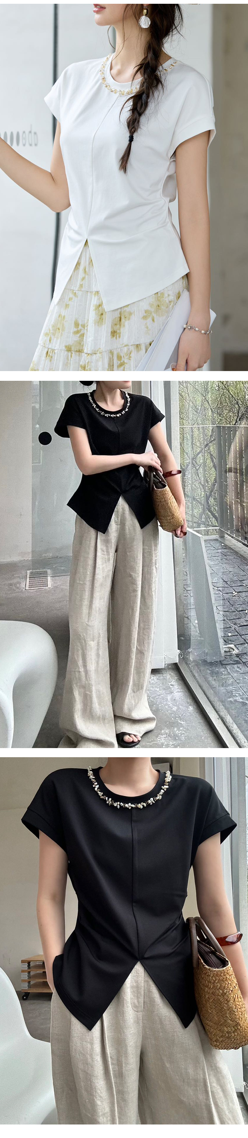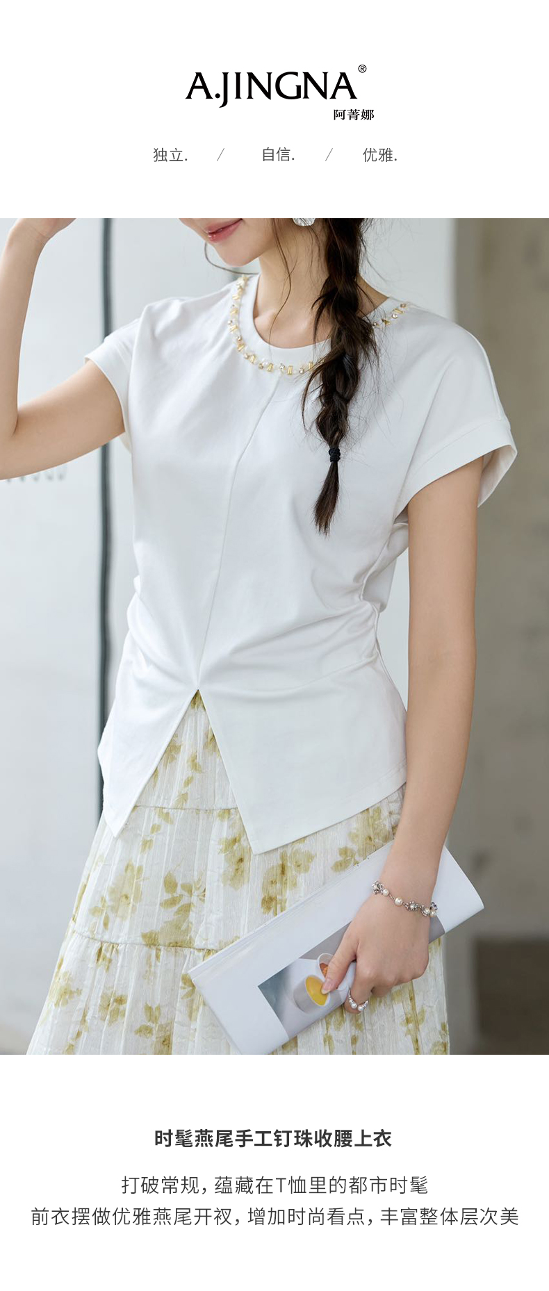 【高级质感】阿菁娜时髦燕尾手工钉珠收腰上衣F30X302001