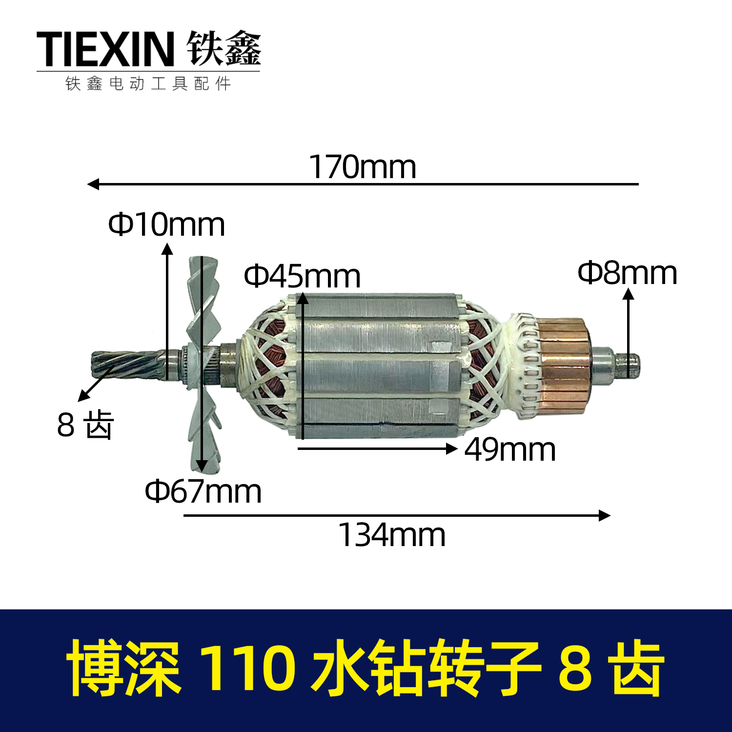 【货号07234】博深110B水钻转子8齿水钻配件水钻电机得丰90水钻转子