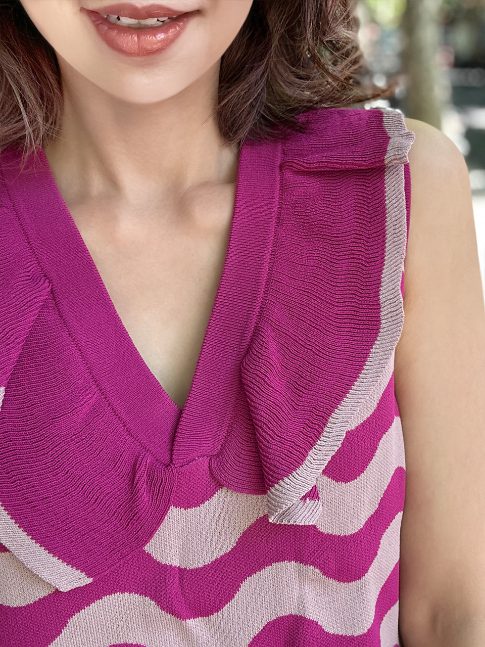 TYNVIE 波浪纹针织背心 - 粉条纹