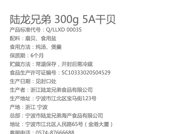 3012陆龙兄弟300g 5A干贝