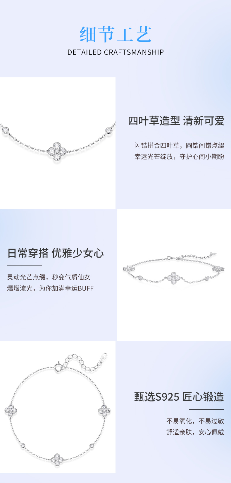 卡蒂罗KADER 四叶草手链 法式浪漫925银小众设计简约高级感森系小清新精致气质拼接链 幸运满怀#好运