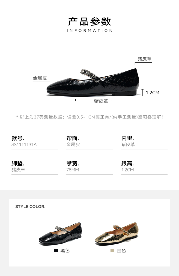 星期六精致方头一字扣玛丽珍SS4111131A