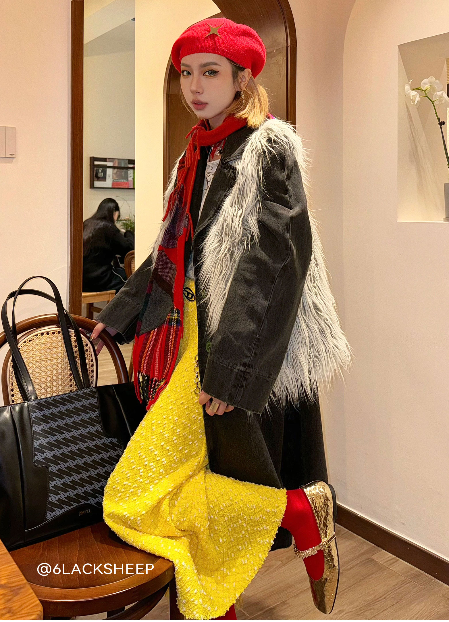 星期六气质尖头马毛皮平底单鞋SSC3111163