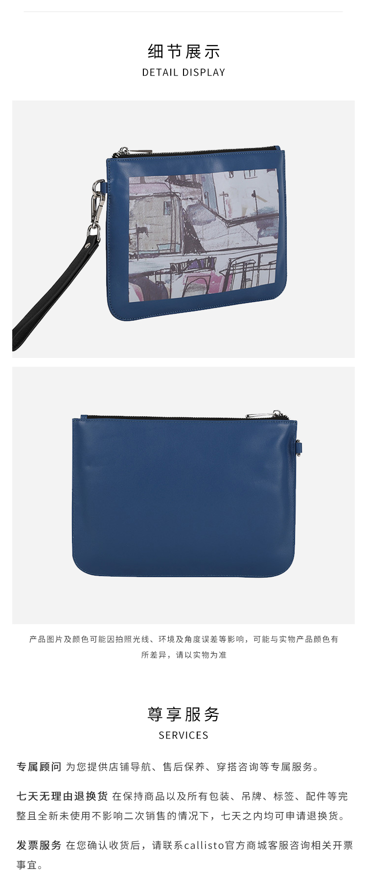 callisto蓝色牛皮革手包 SPCHB002BL