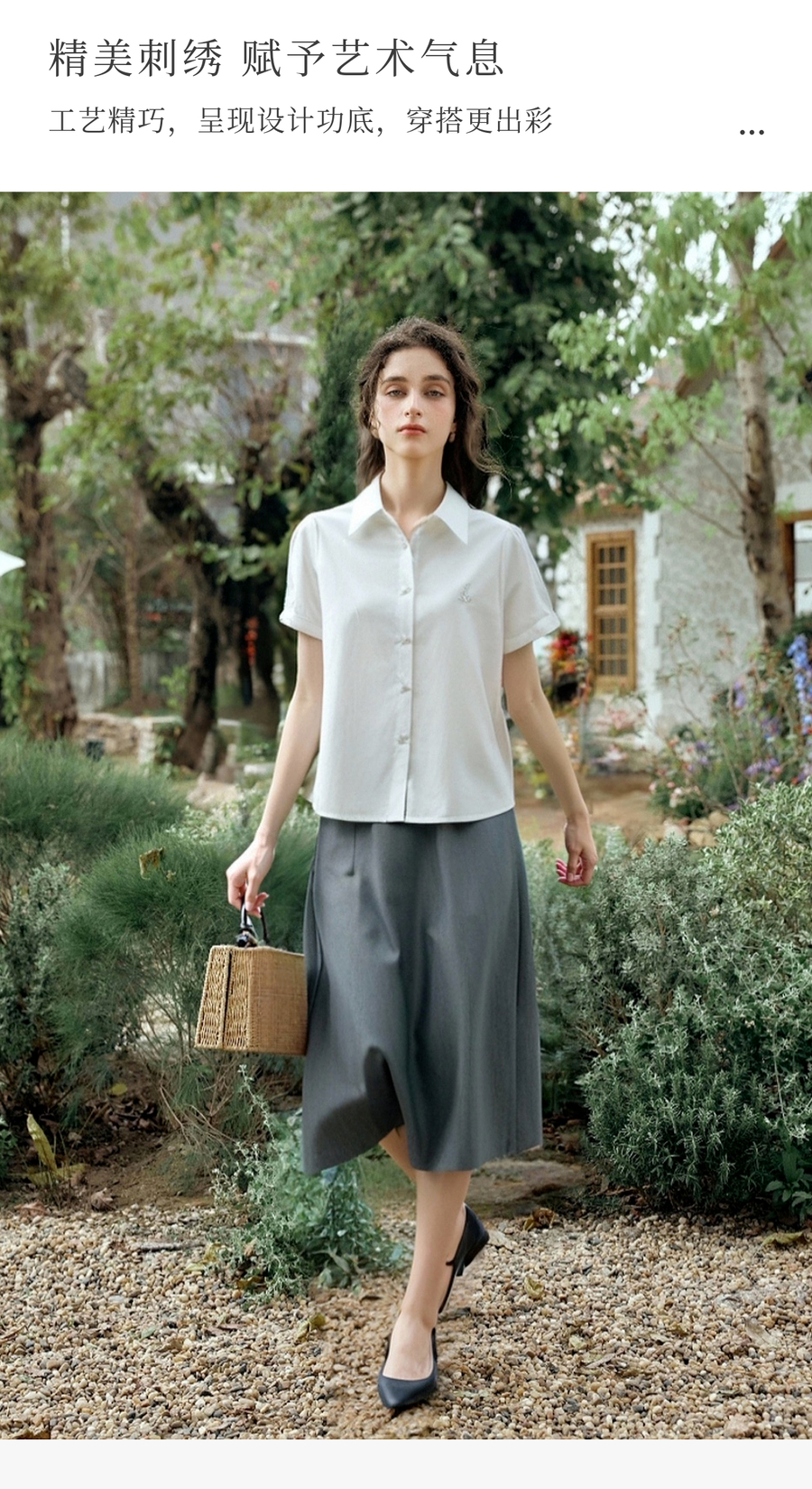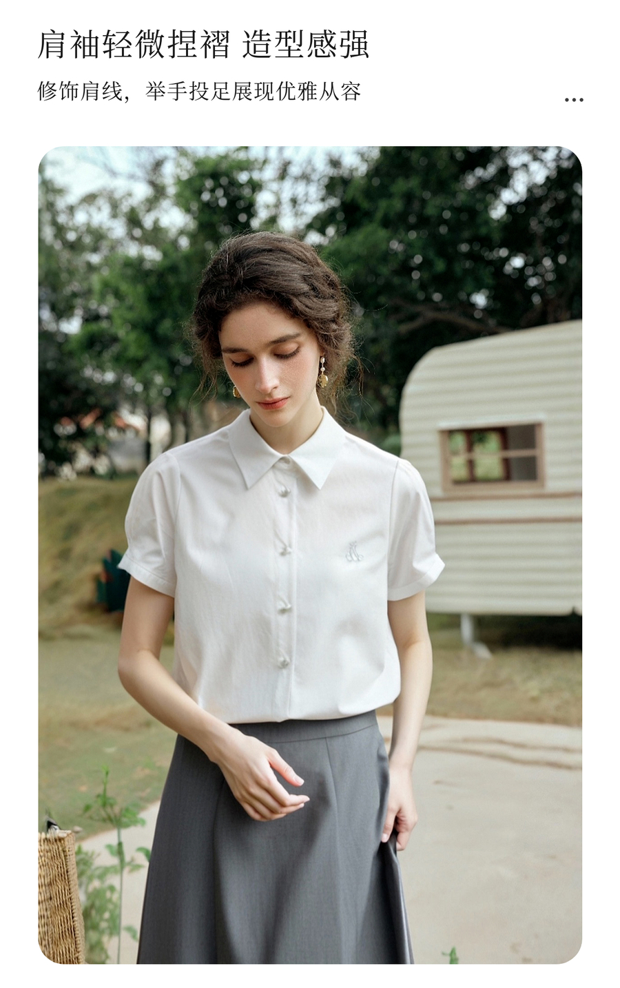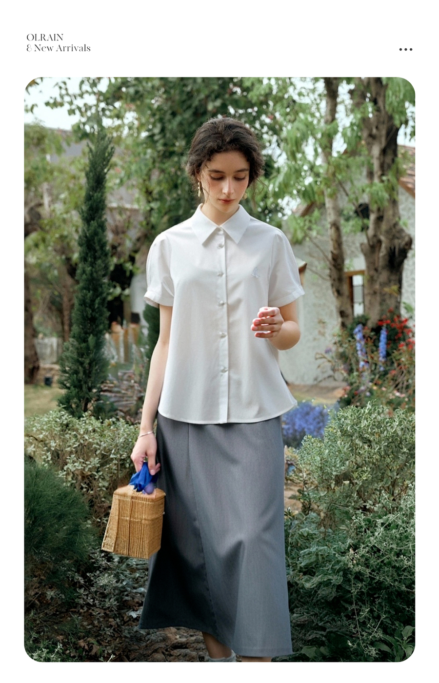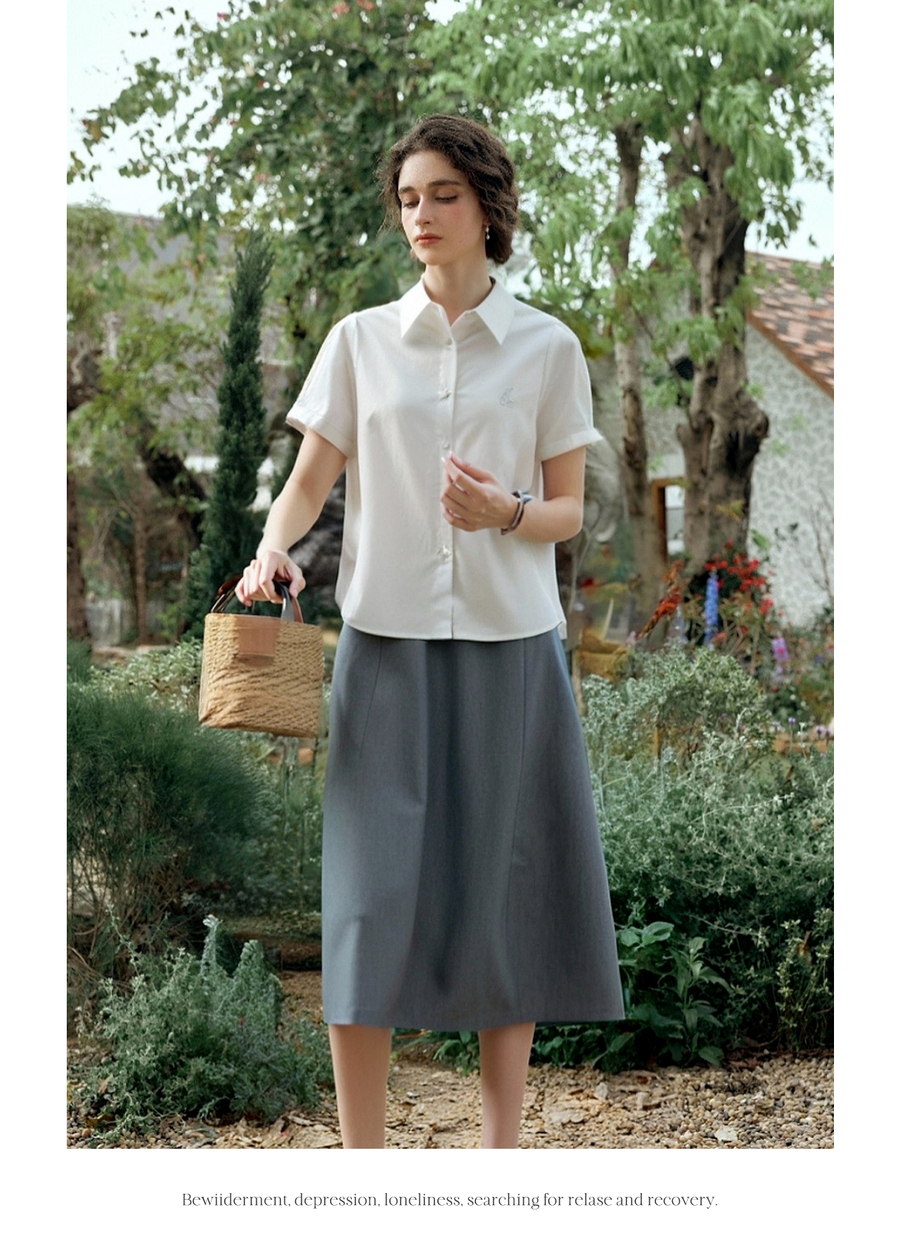 OLrain欧芮儿2025夏季新款miu系精美刺绣短袖衬衫单排多扣上衣女
