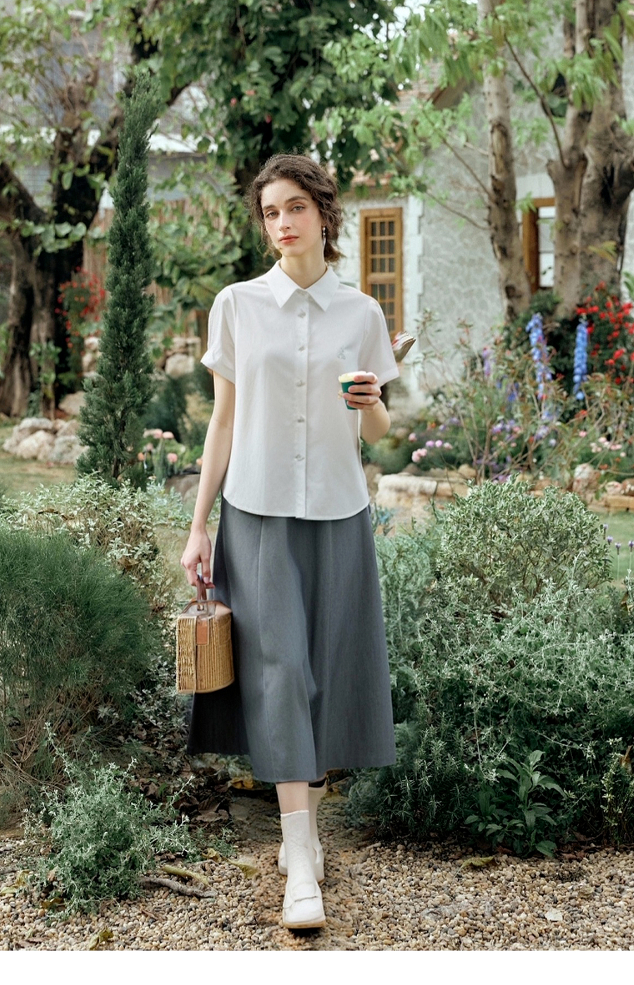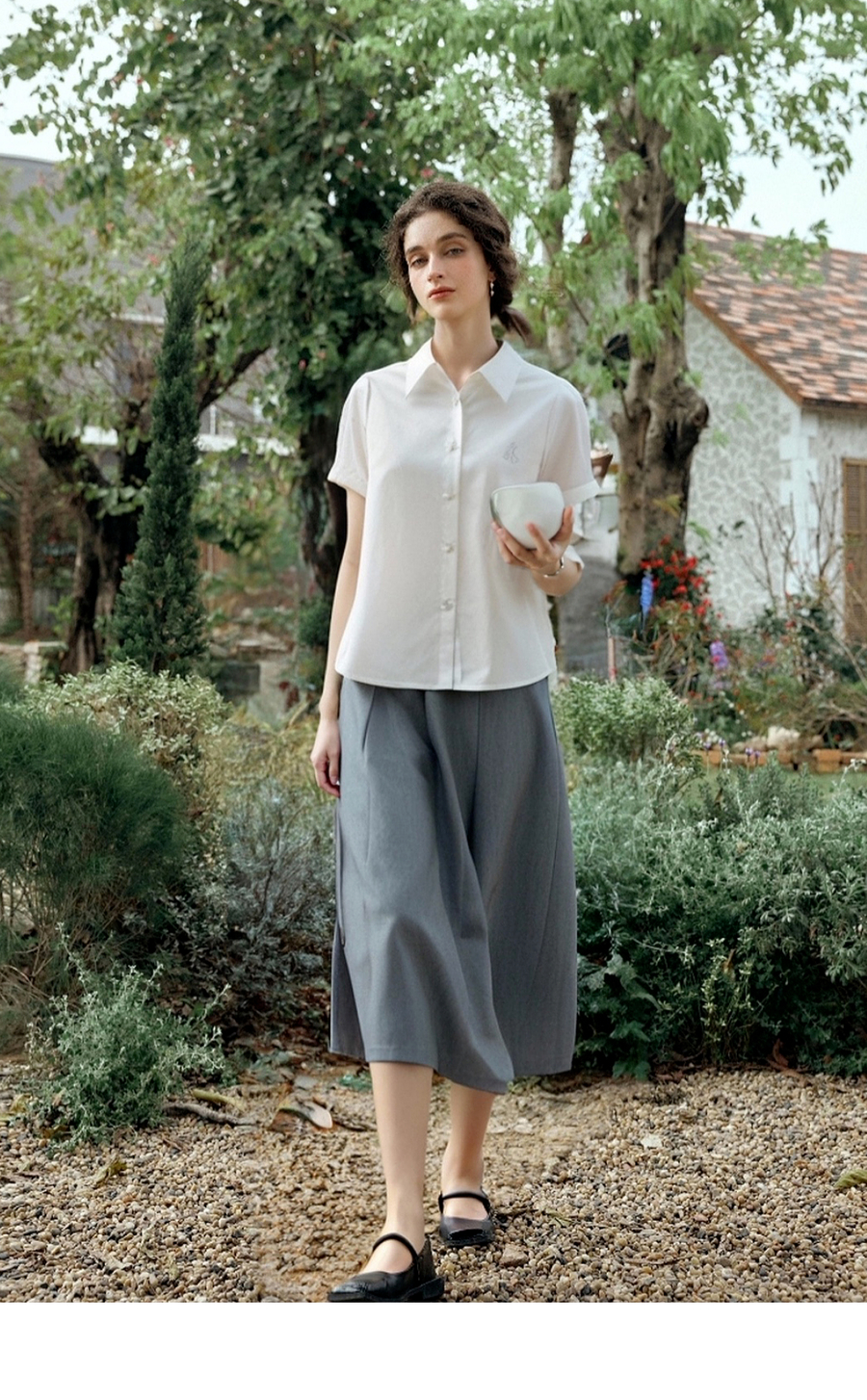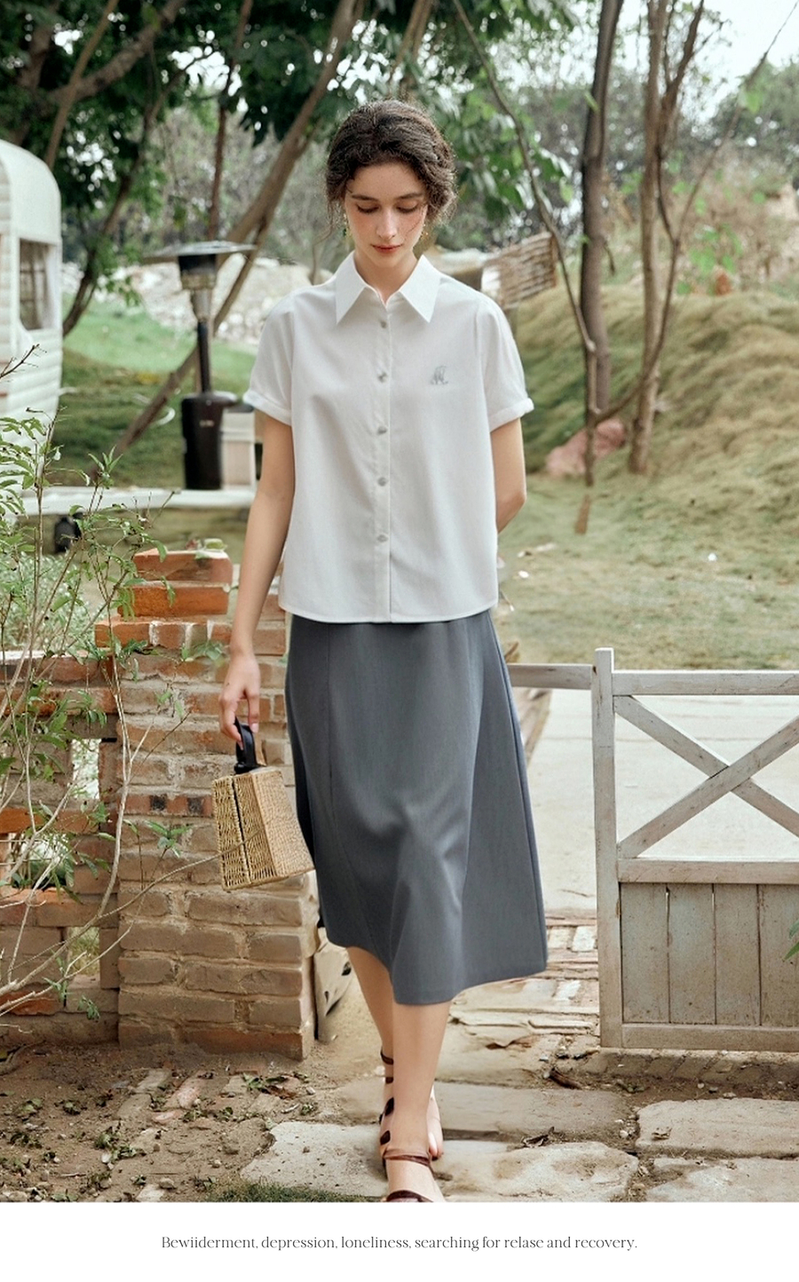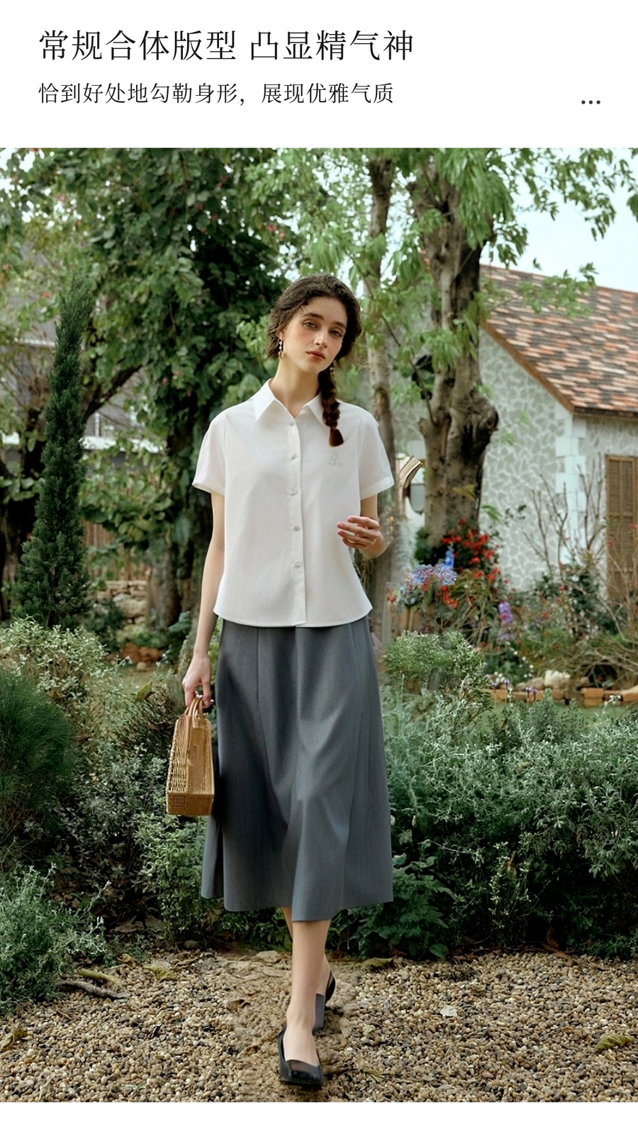 OLrain欧芮儿2025夏季新款miu系精美刺绣短袖衬衫单排多扣上衣女