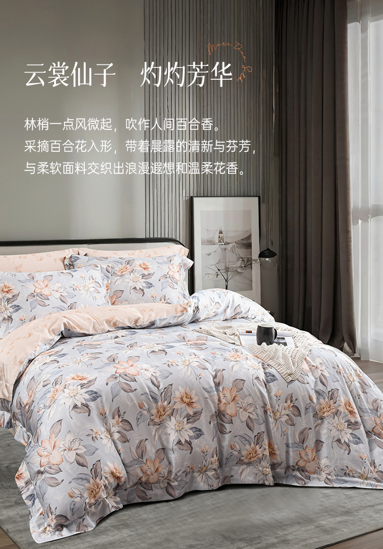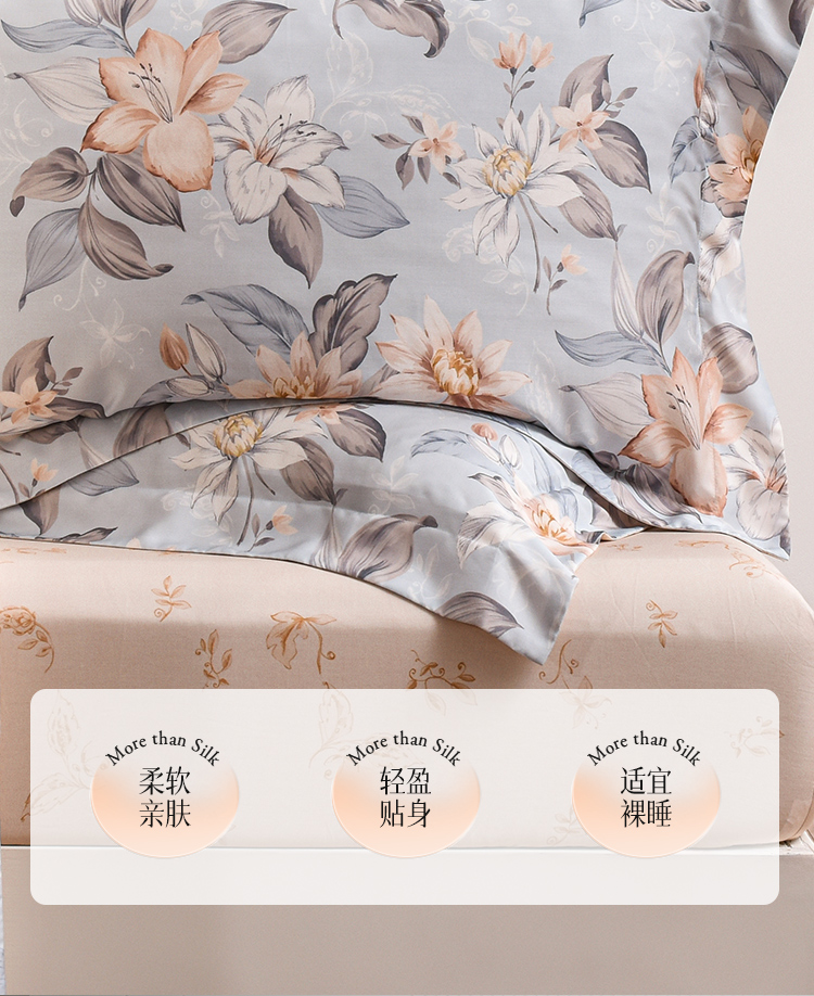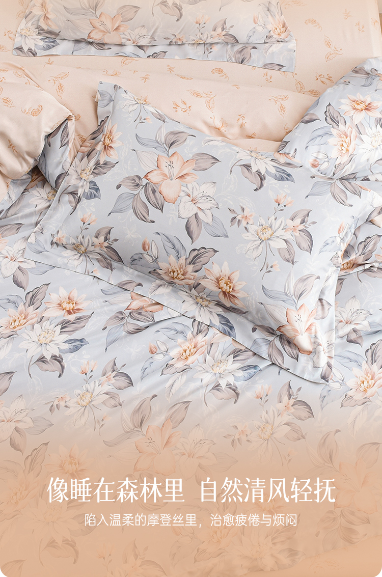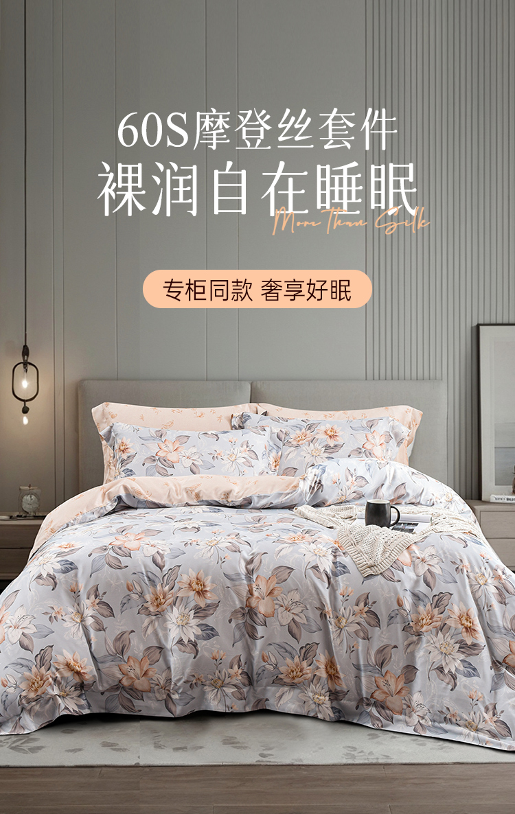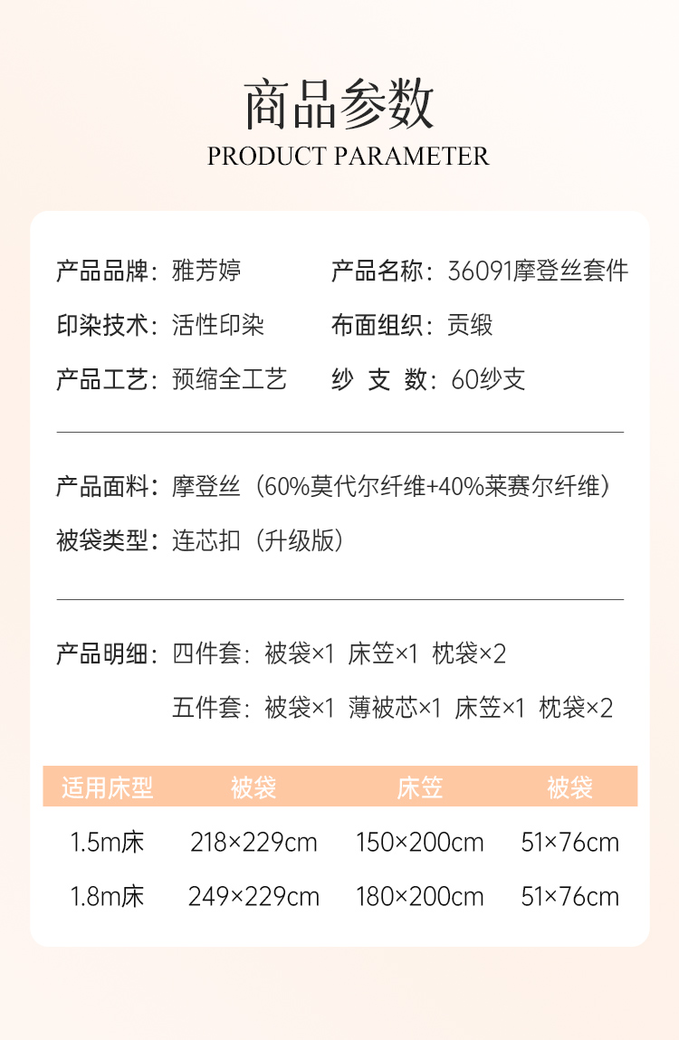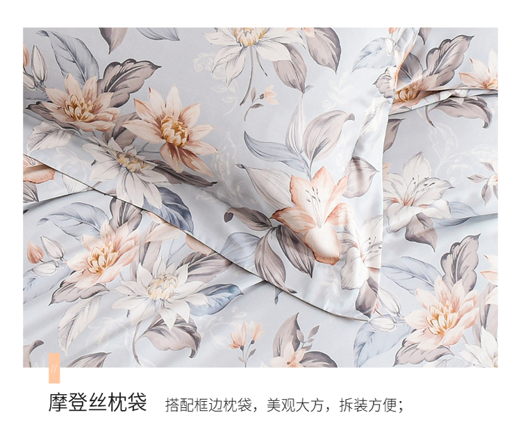 雅芳婷专柜同款摩登丝四件套贡缎活印欧式60纱支连芯扣床品套件
