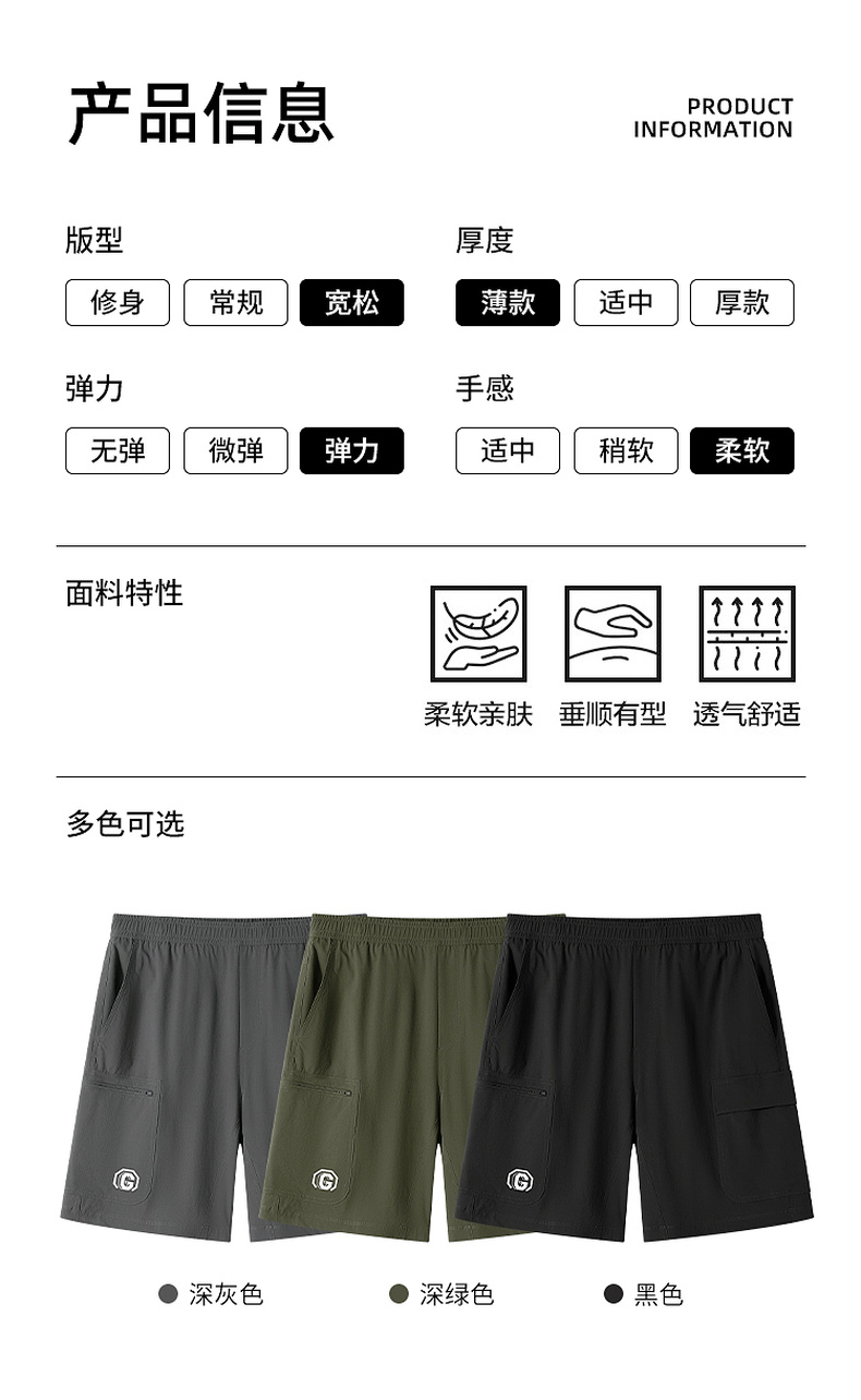 GXG男装【凉爽亲肤】25夏季户外工装沙滩裤男式休闲短裤五分裤K&C