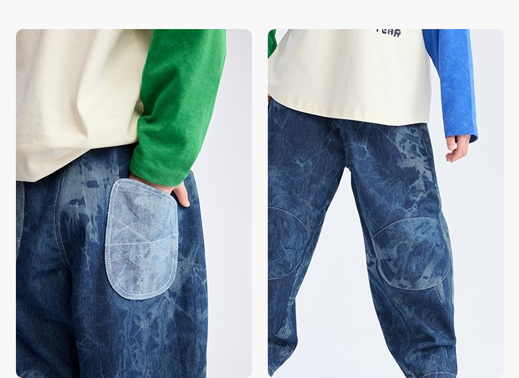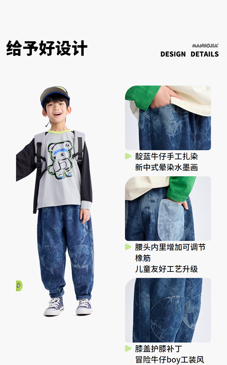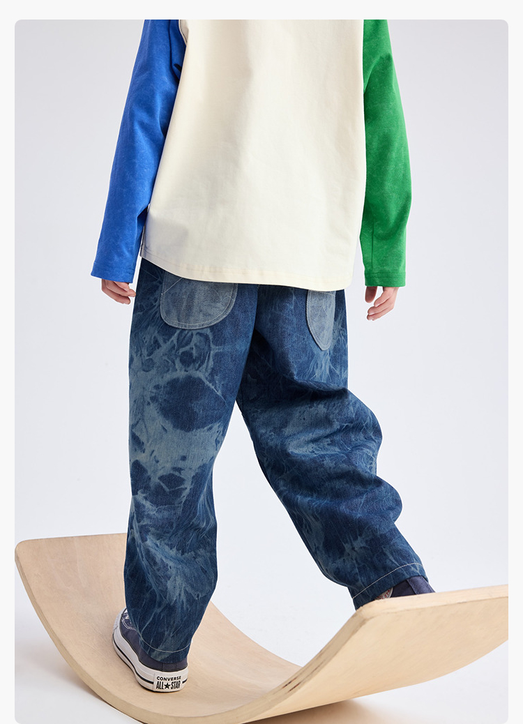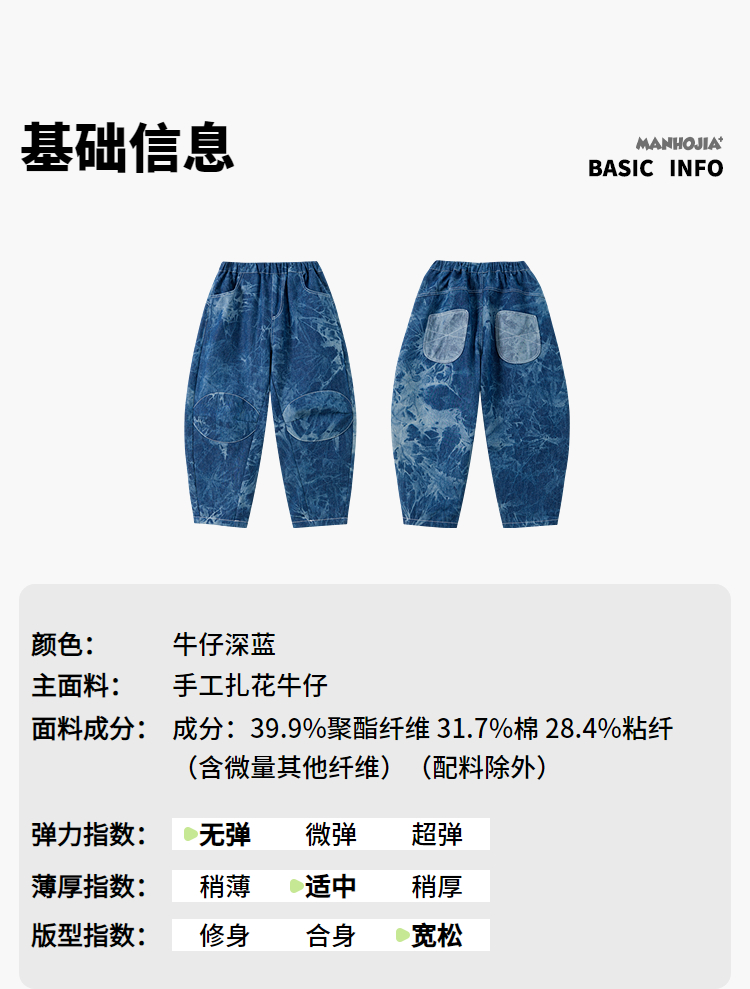 【熊盆友】漫画家25春靛蓝水墨晕染手工扎染可调节腰头牛仔裤