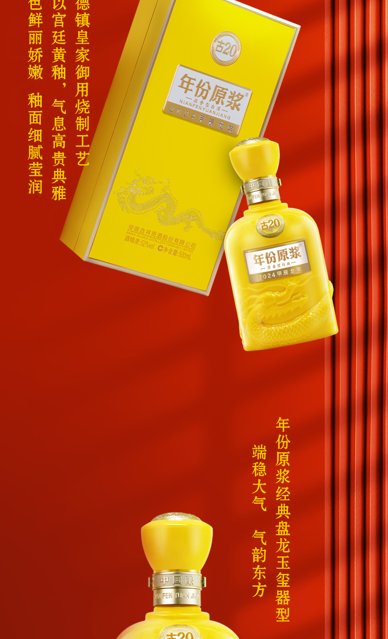 古井贡酒年份原浆古20龙年生肖版 52度500ml*1瓶 浓香型白酒 商品图0