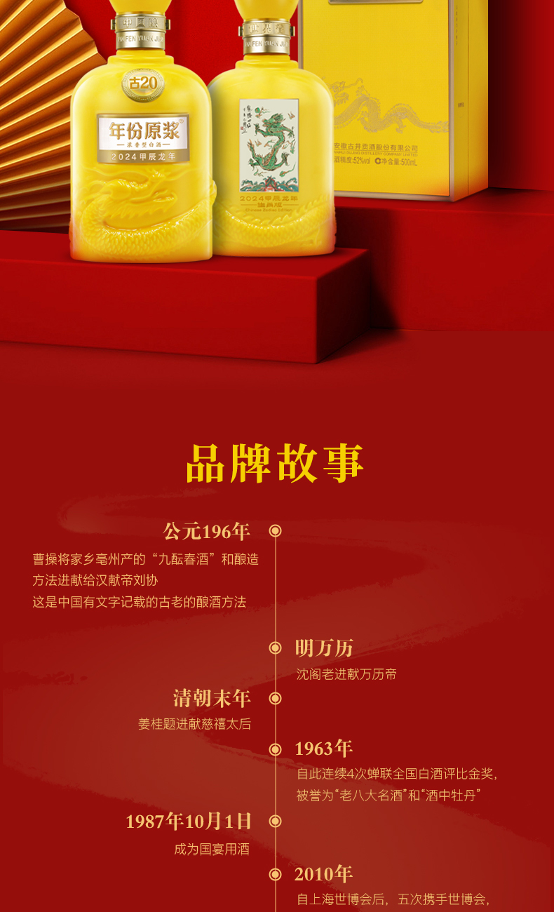 古井贡酒年份原浆古20龙年生肖版 52度500ml*1瓶 浓香型白酒 商品图4