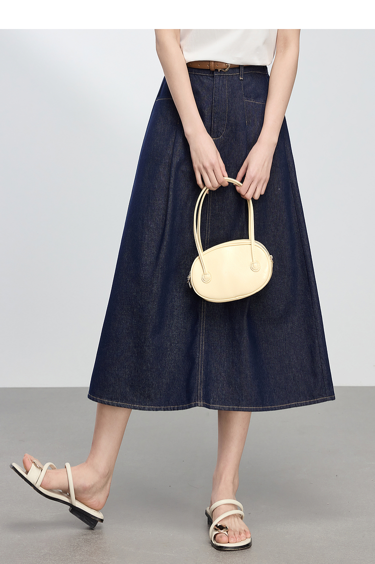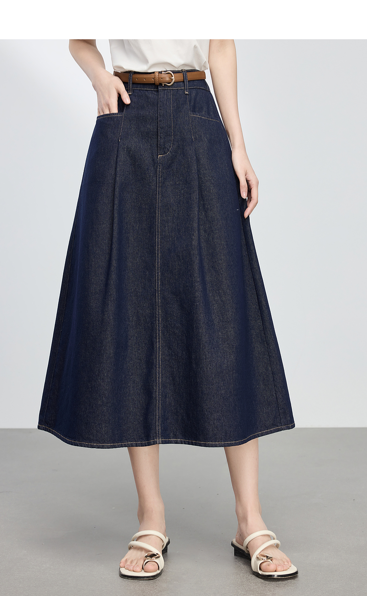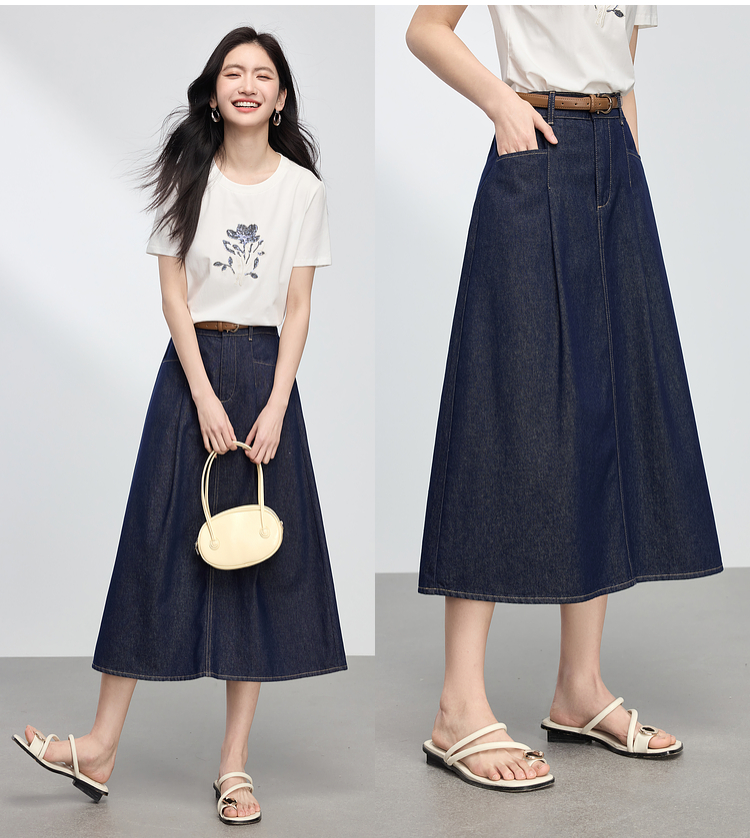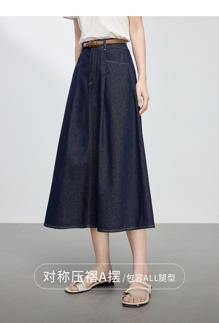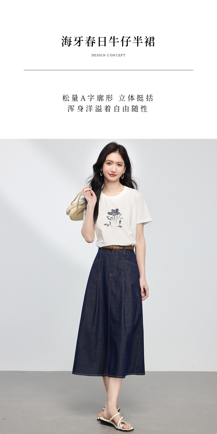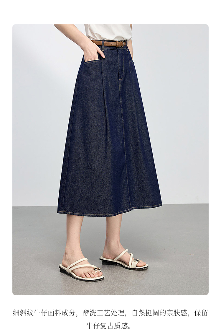 【专属特价】熙世界原色牛仔半身裙女春秋2025新款复古高腰显瘦中长款a字半裙