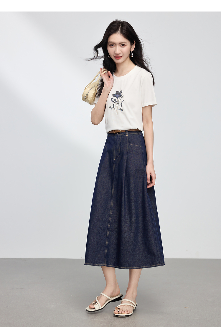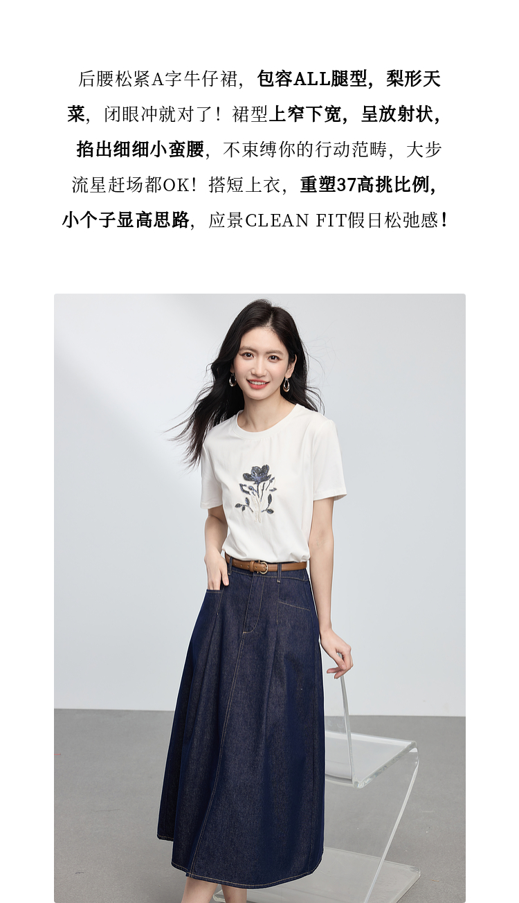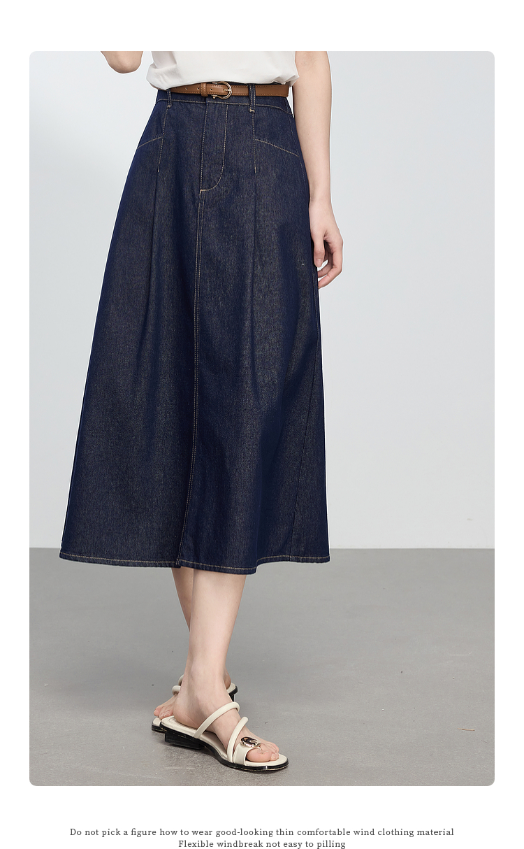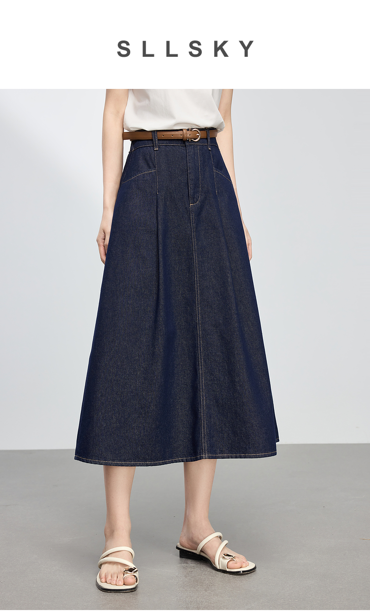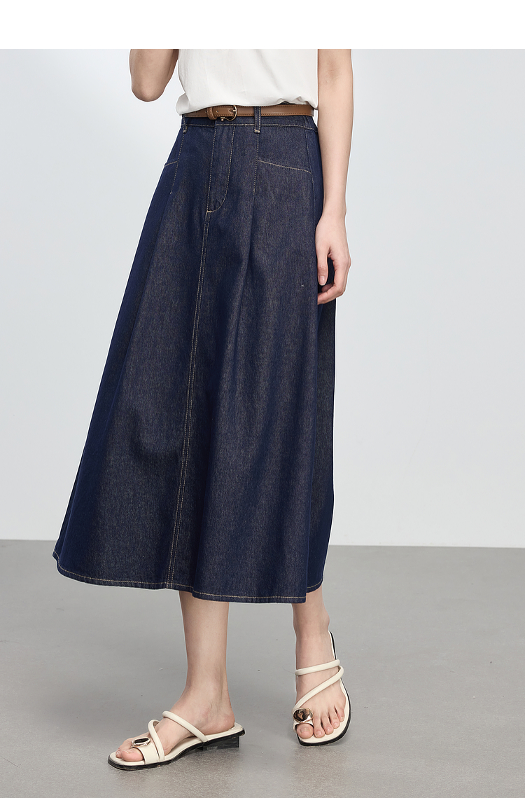 【专属特价】熙世界原色牛仔半身裙女春秋2025新款复古高腰显瘦中长款a字半裙