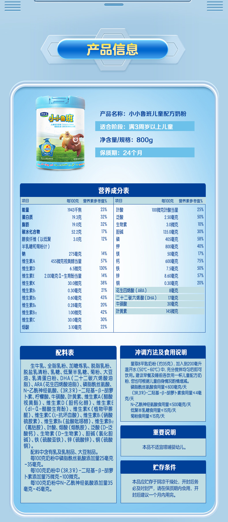 君乐宝小小鲁班成长配方奶粉3岁以上800g/JLB-723202
