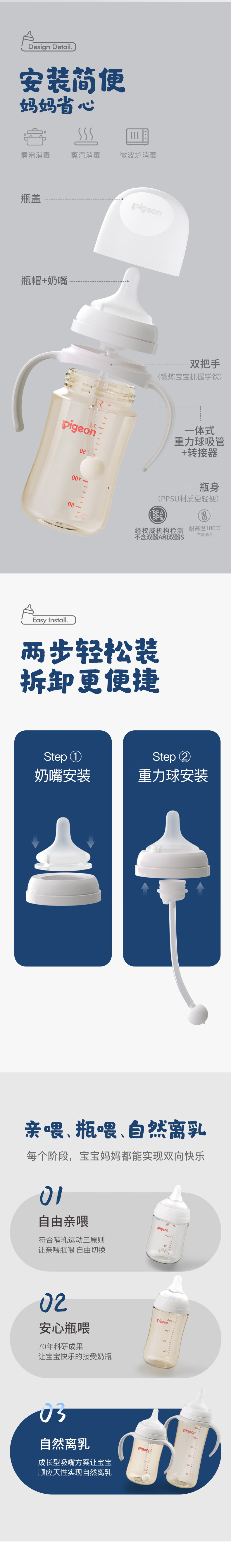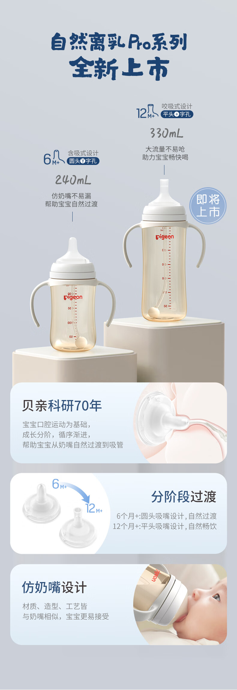 贝亲 自然离乳 吸管奶瓶 吸管杯 240ml/330ml