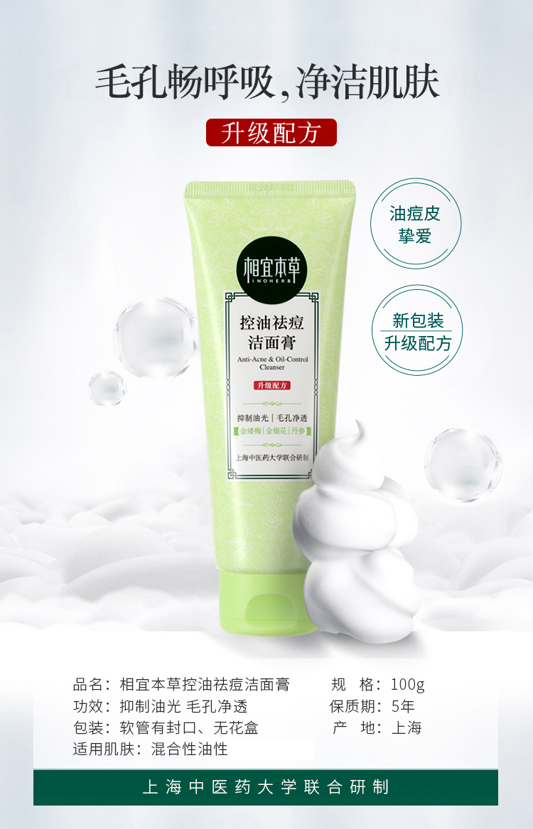相宜本草控油祛痘洁面膏*100g(新包装)