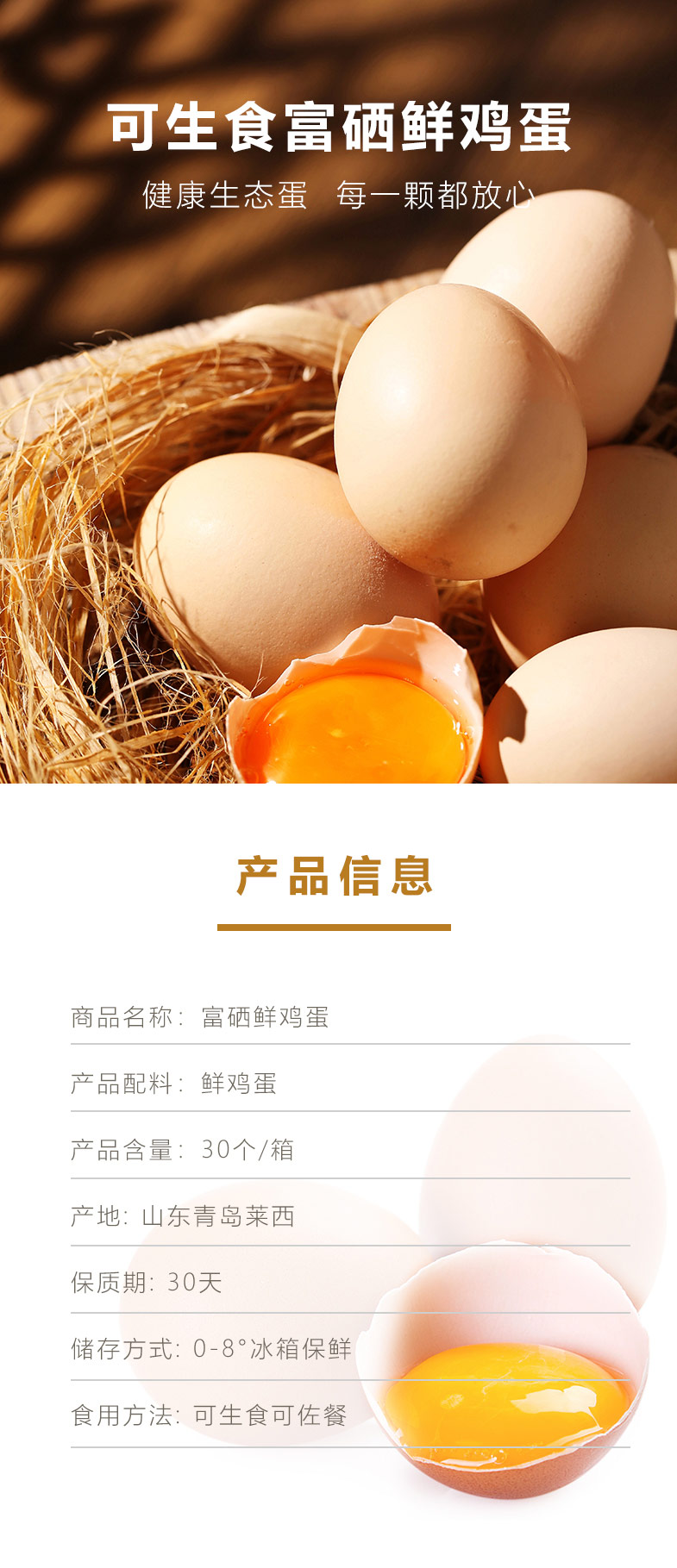 【富硒可生食鲜鸡蛋】硒含量是普通鸡蛋的4-5倍!健康生态蛋,不添加抗生素!蛋黄呈橙红色,蛋清更黏稠清澈!无蛋腥味,健康美味,老少皆宜!当日产新鲜直达,时效保障!30个/箱!【QJ-J仓】