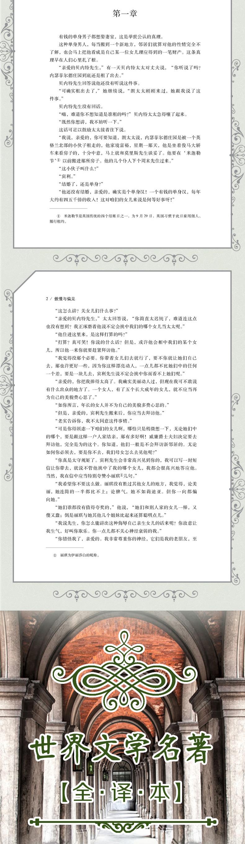 【正版】世界文学名著—傲慢与偏见(全译本) 全译本无删减原版原著全文翻译 儿童文学名著青少年中小学生课外阅读书籍