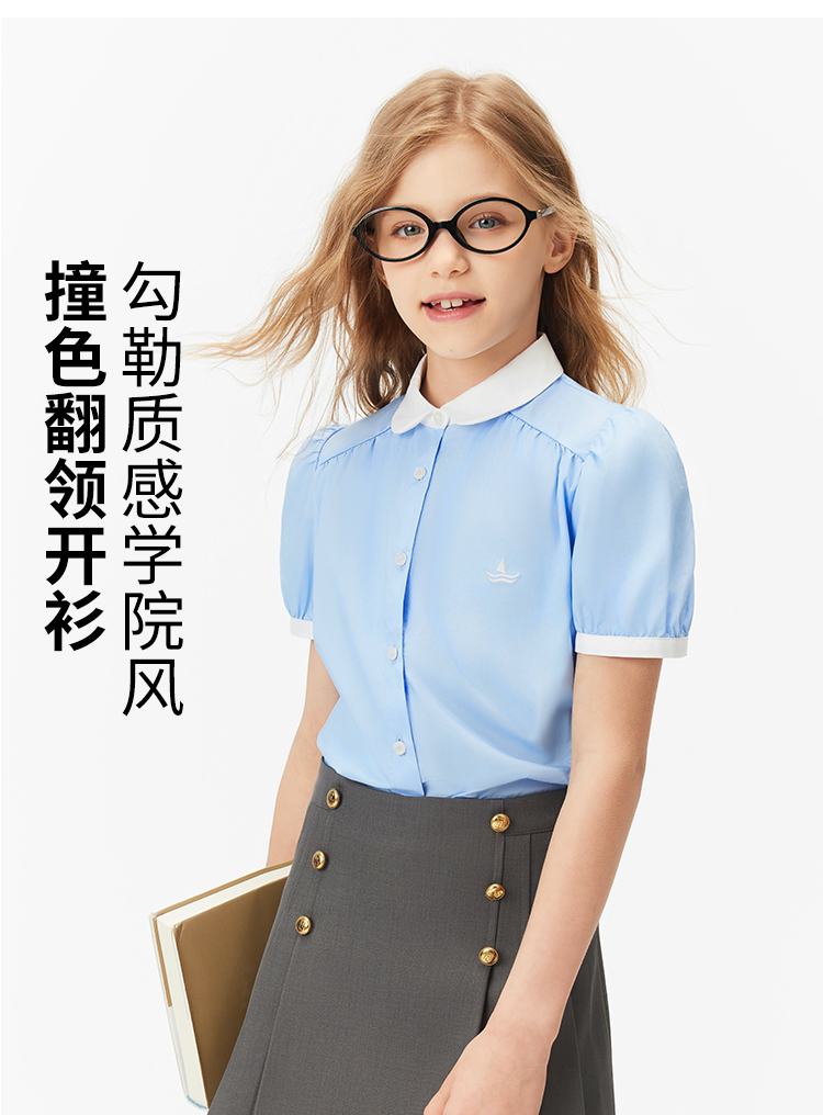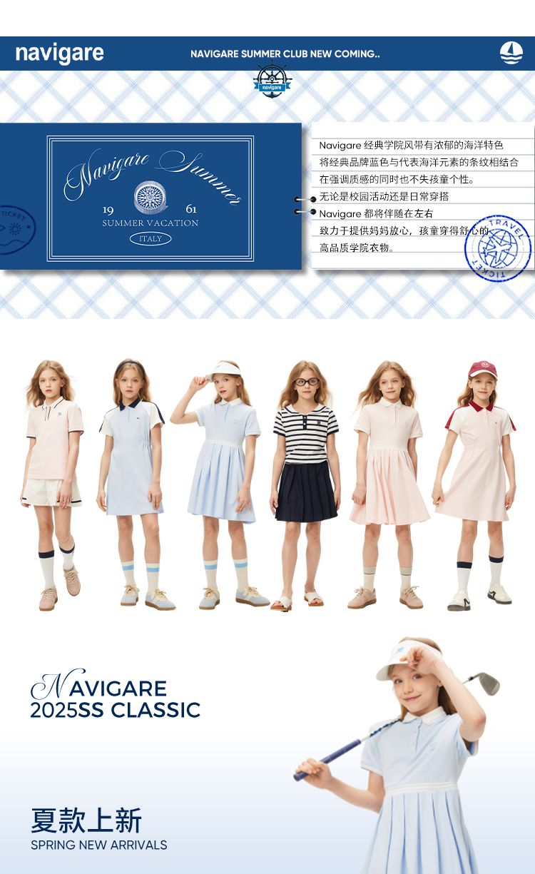 【纳维凯尔】【120-165】Navigare意大利小帆船女童夏季短袖衬衫