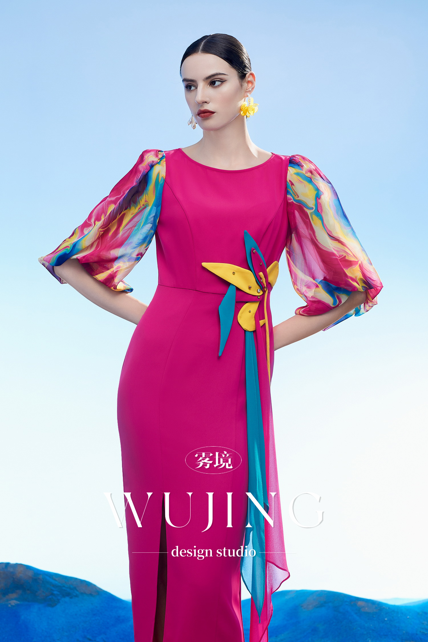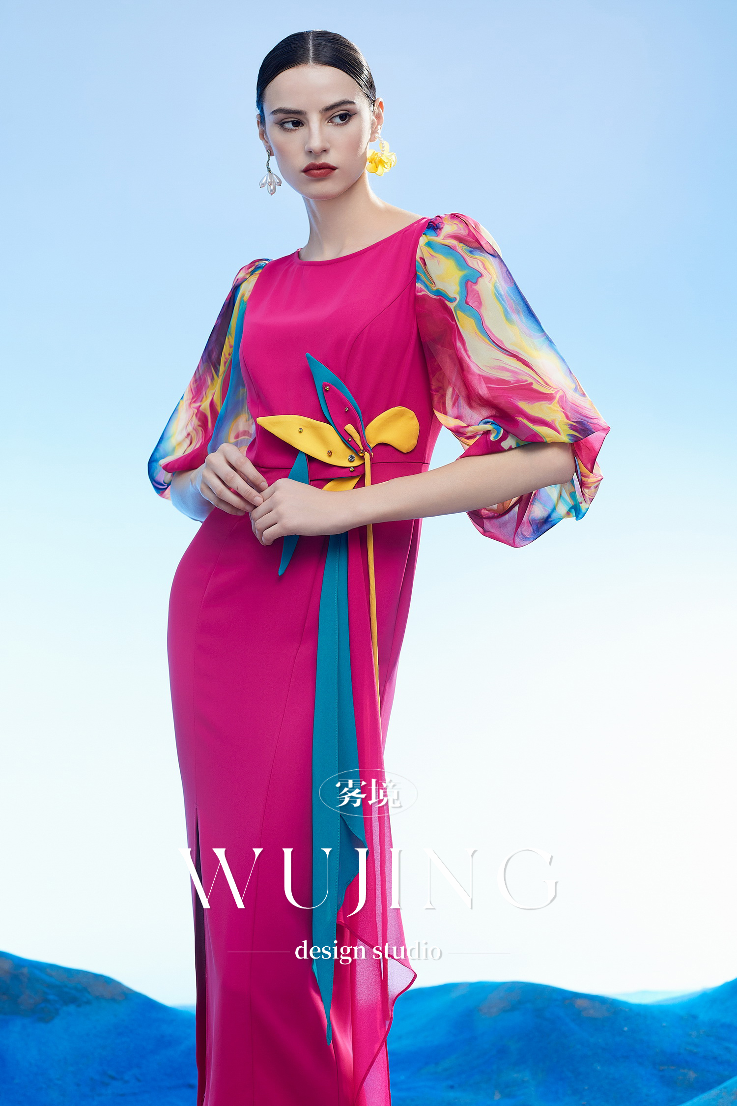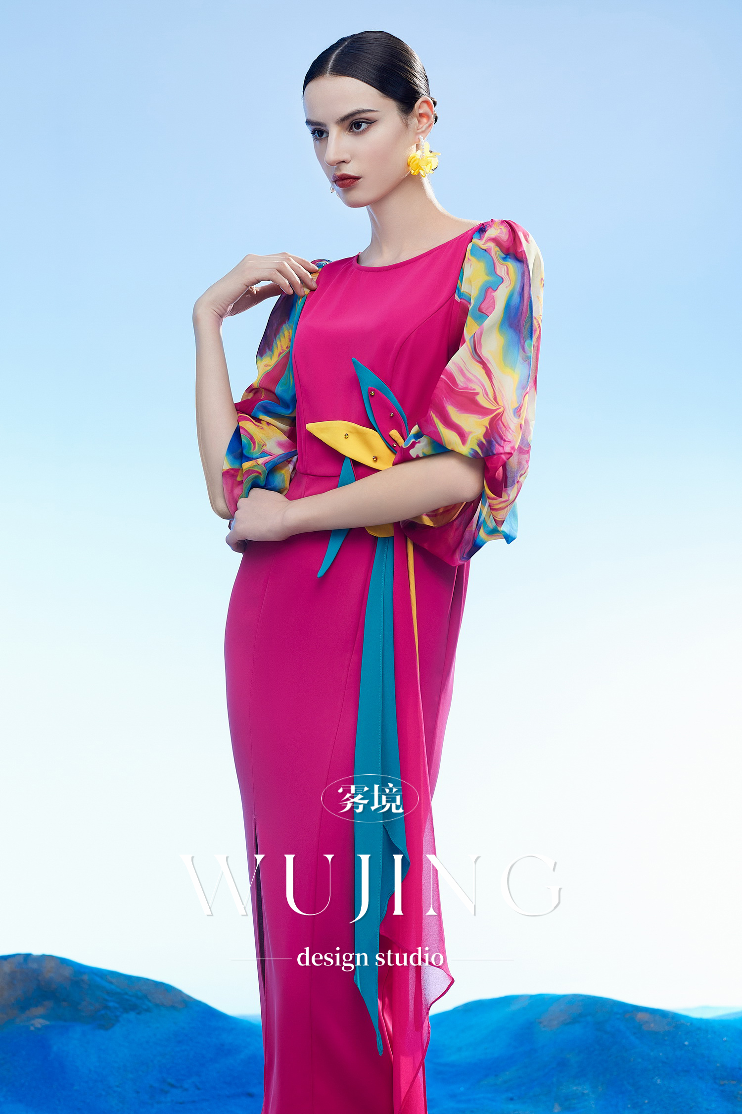 3204093 丹霞染绫 韩国进口水晶乔其纱进口斜纹织锦缎连衣裙 雾境